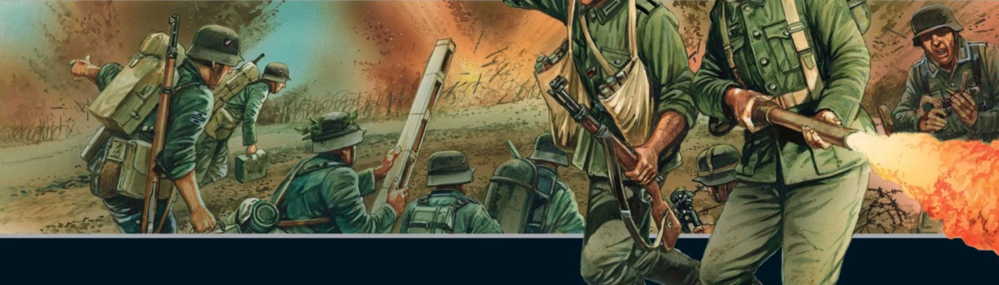In a bit of a surprise turn, the product photo on the Warlord Games website gives us a pretty solid Platoon structure and is, honestly, the same direction that I was going to take. Goliath Team, Lt, Flamethrower Team, three squads of Pioneers. Six dice, 500pts. The difference in our list is the equipment for our three squads.
