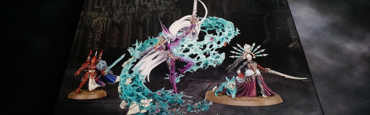 Let’s take a look inside the box of Gathering Storm II – The Triumvirate of Ynnead. Unlike the first Triumvirate, the Triumvirate of the Imperium, this set contains three new characters – The Yncarne, Yvraine and The Visarch. The background for these new Eldar Special Characters is all included in Fracture of Biel-Tan.