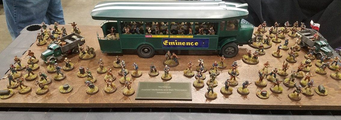 When we began planning out the Partiboys, right at the end of Operation Sting in November, we didn’t have any particular historical theme in mind. We just knew that the partisans sounded like a fun army to paint and that we had tracked down a hilarious, but completely out of scale, model bus that would be a one-of-a-kind display for the army. Five months later, they were ready to roll, and when we rolled the Partibus to the Doubles event we were thrilled by all the people who came up and looked at or took pictures of the setup. We went into it with a lighthearted attitude and we loved that other people took it in stride.