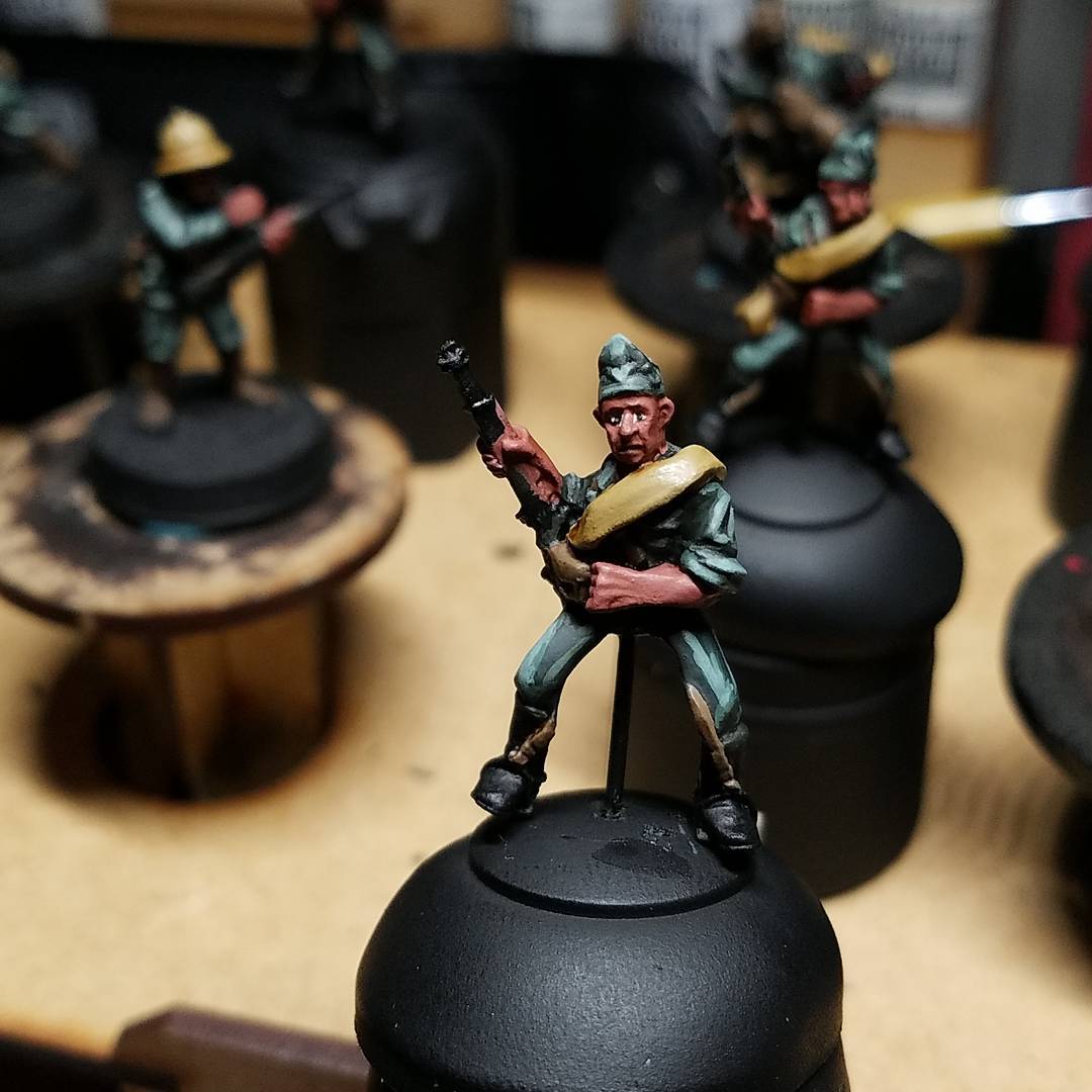 With Operation Sting right around the corner I am back to speed painting. I made serious progress on the second colonial infantry squad and am cutting a few corners compared to the first unit. I am not painting eyes, simplified the webbing and the rifles. I will have this batch of five finished tomorrow and should be done on the next batch (only four) by the end of the weekend.
