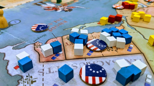1775 from Academy Games is possibly my favorite team game. There is an incredible combination of broad strategic decisions and edge of your seat dice rolls. The movement cards keep player turns focused and the event cards can lead to huge and unexpected swings. I got in two games over the weekend and both were filled with literal stand-up moments. Such a fantastic game! – Andrew