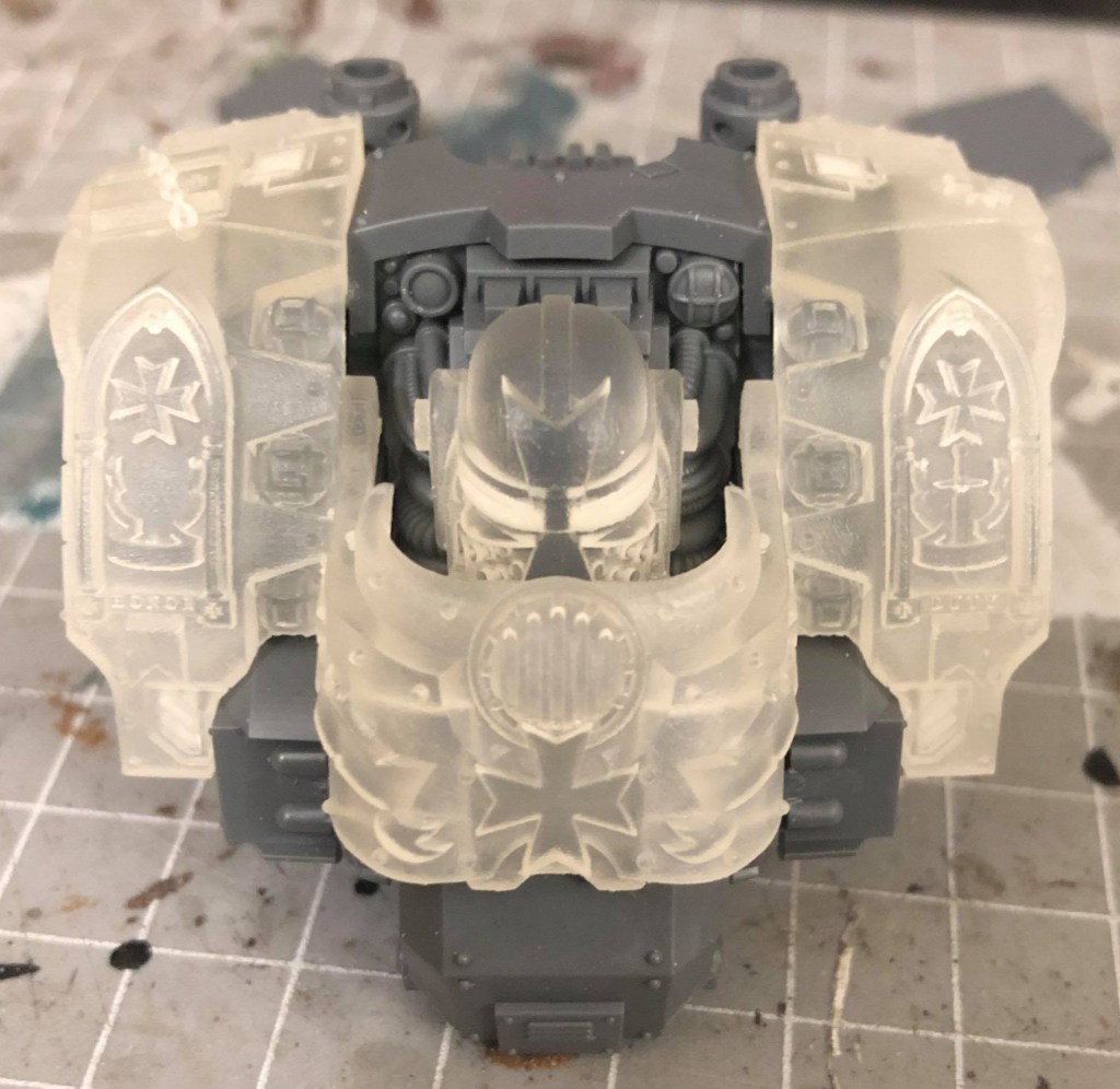So, it happened again. As I knew it would, and yet this time I was hopeful. I still find myself struggling when painting the black power armor on my Astartes, despite liking the results I have gotten on other parts of the test minis. With the power armor being such a major part of the model though, of course, getting that black down is a bit important! When I found frustration mounting a bit, I decided to take a step back and reset, and with my Pop Goes the Monkey order arriving, I was provided with a perfect opportunity to do just that. I had ordered a Redemptor Dreadnought upgrade pack, a pack for upgrading an Intercessor squad, and some random Templar crosses and iconography for use on vehicles, etc. So the focus for this Part 2 article is the Redemptor.