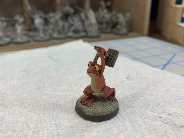 The first goal of this project was paint focused and had two groups of frogs on the painting table. The Lilyhammers were successfully painted but the Musketeers were unfortunately delayed. The Lilyhammers scheme was based on the Tomato frog. These models being majority skin/flesh has me learning and leaning a bit more into wet blending on the model than any previous works.