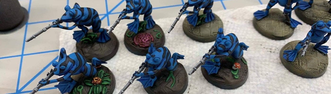 The first goal of this project was paint focused and had two groups of frogs on the painting table. The Lilyhammers were successfully painted but the Musketeers were unfortunately delayed. The Lilyhammers scheme was based on the Tomato frog. These models being majority skin/flesh has me learning and leaning a bit more into wet blending on the model than any previous works.