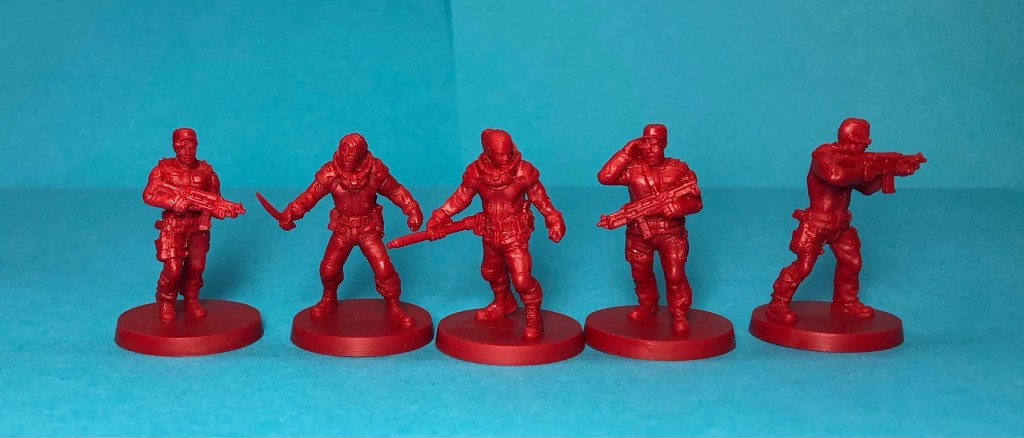 These are five models from Mantic Star Saga. Joseph describes the Ruffians as “low level grunts in light armour carrying pistols” and I think these will fit the bill. Technically most aren’t carrying pistols but I believe they will serve just fine in the “counts as” role.
