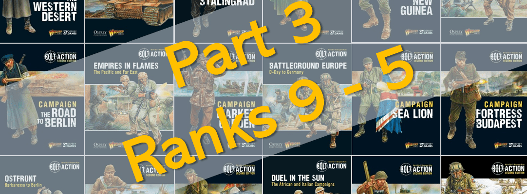 But let us never forget, Tank War gave us the Armored Platoon Selector. For that alone, this book deserves a spot in the Top 10. Thank you Tank War, for giving us a new way to play our beloved Bolt Action.