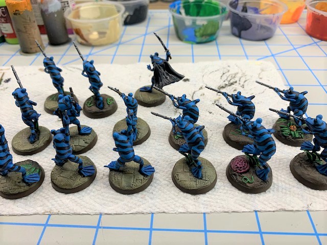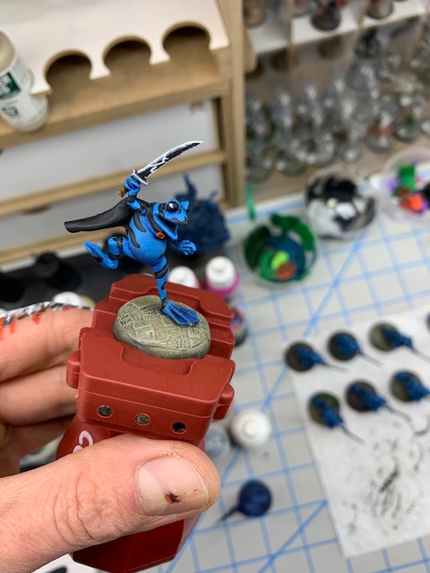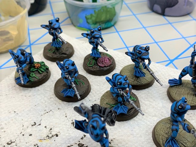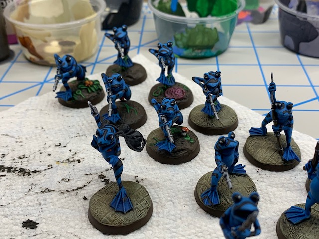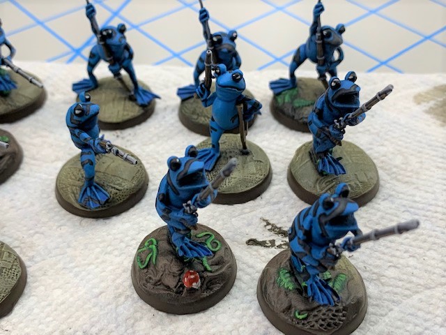 Also, Hopf Ribbideon was finished to lead these frogs. He is just a Skink Alpha by rules, but he can lead these dark troopers through the jungle to find those rebel scum.