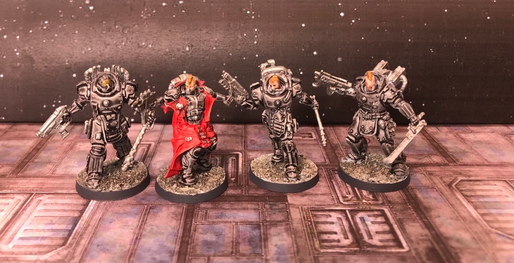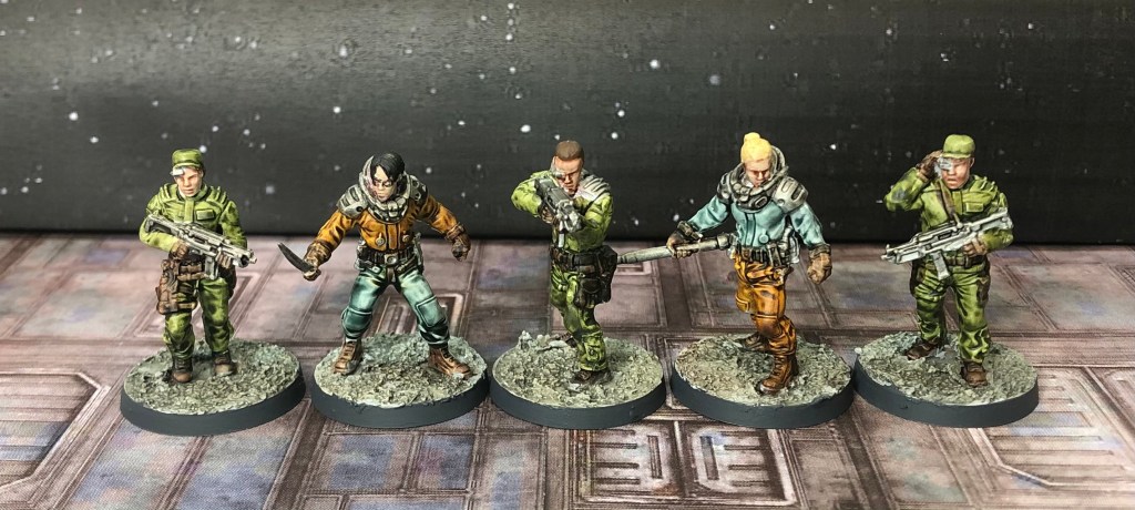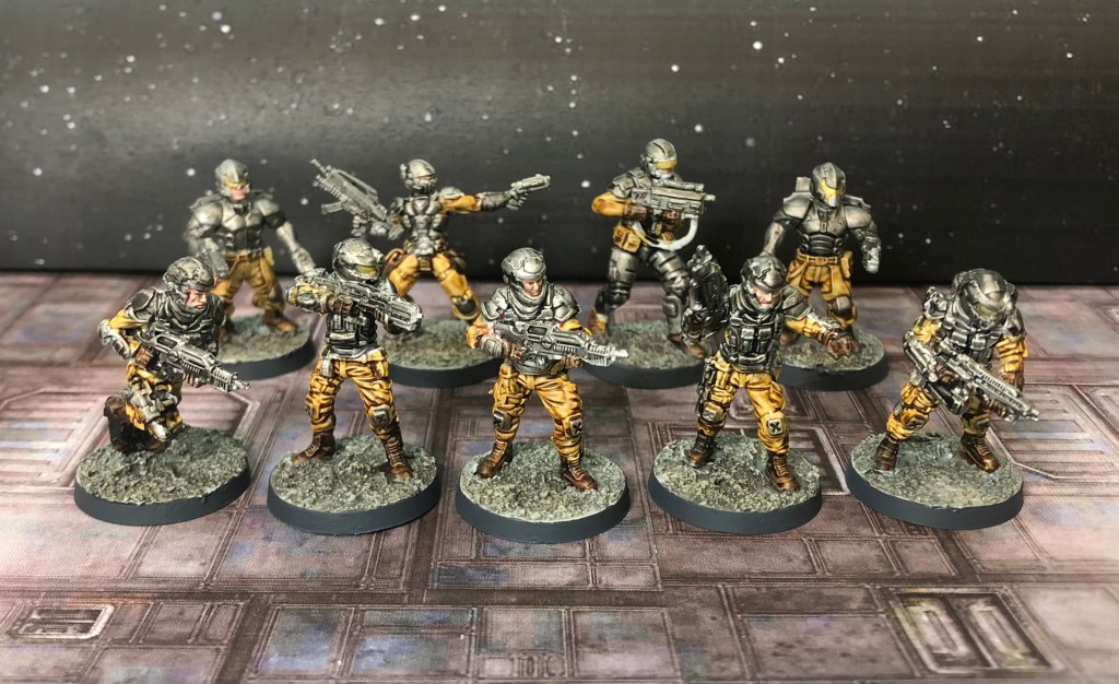 I was happy to see that I could squeeze all 20 models, roughly into the two Crews as I had planned. I took some liberties with “Counts as” approach, especially for some of the interpretations of the heavy armour. Several of these models will be upgraded to the Combat Armour style specialists when the crews get some more credits. Both crews have a few extra credits to spend but otherwise fit the requirements of no more than 8 Soldiers including no more than 4 specialists!