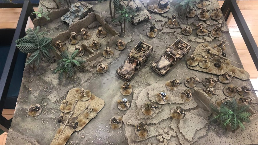 I brought my New Zealanders again this year, but not backed up by SAS, this time it was the British Eighth Army “The Desert Rats” who fought through North Africa and into Tunisia where my army theme was set.