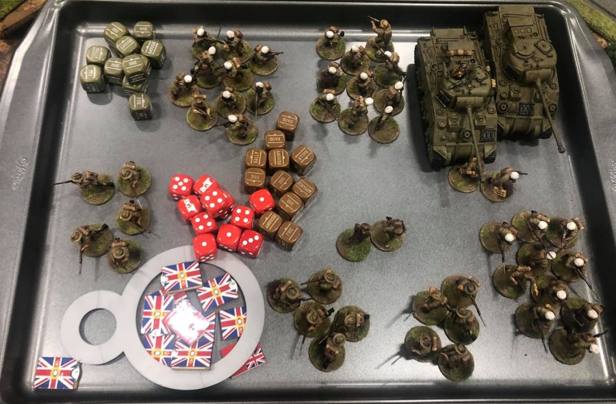 For Day Two I was going into the battle undefeated, and drew against my friend John Stentz. It would be British vs British, Maori vs Gurkhas. I knew this was going to be a tough battle and it absolute was. Neither of us could advance far as the table was heavily packed with difficult terrain. John’s Naval Artillery Strike failed to materialize for four turns which helped me advance and hold the line. My Artillery came down pretty quick but not really do damage, but did provide some Pins which slowed John’s advance. The battle came down to two dice rolls at the very end to determine which Sector my two units were in. I rolled two 3s which meant it ended as a 10-13 loss rather than a potential 14-13 draw. Very close game…