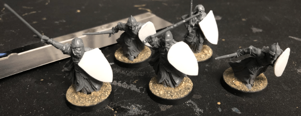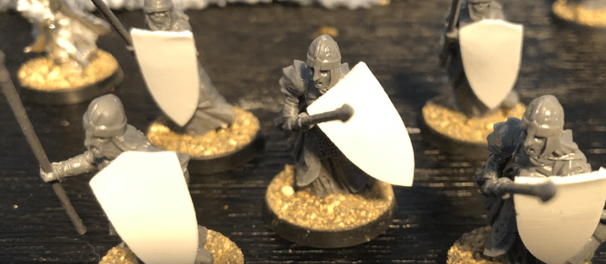 If you remember from Part II of the series, I had bought some questionable shields to add to my ghost army. Those shields had very pronounced print lines and ridges, which I attempted to remediate by applying some of Games Workshop’s Liquid Green Stuff and then filing down. I am constantly disappointed by the Liquid Green Stuff so I was not overly surprised when the experiment was also disappointing. After making a big powdery mess from filing the resin/green stuff to make a smooth surface, some of the ridges and lines were still present and, not being a fan of extra work for poor results, I switched my approach and bought some shields by Deus Vult. These were much, much better and so I ordered a few more and kitted out the rest of the force with them.