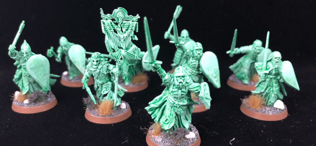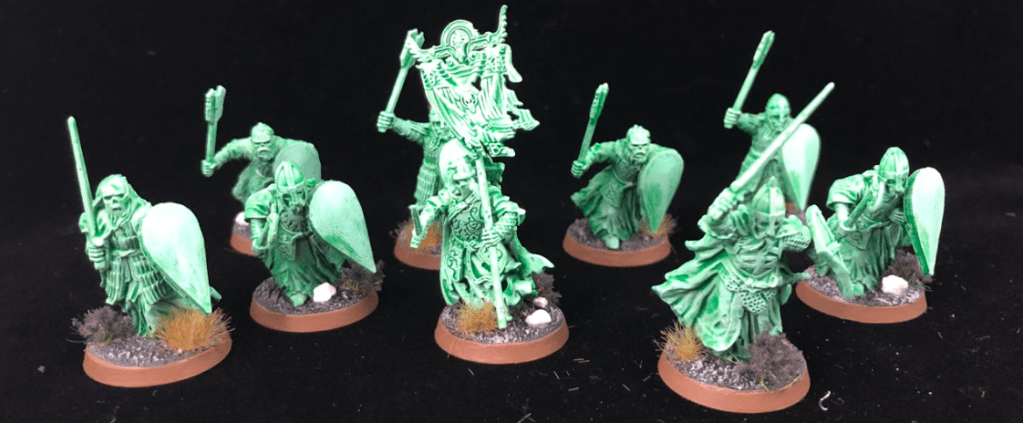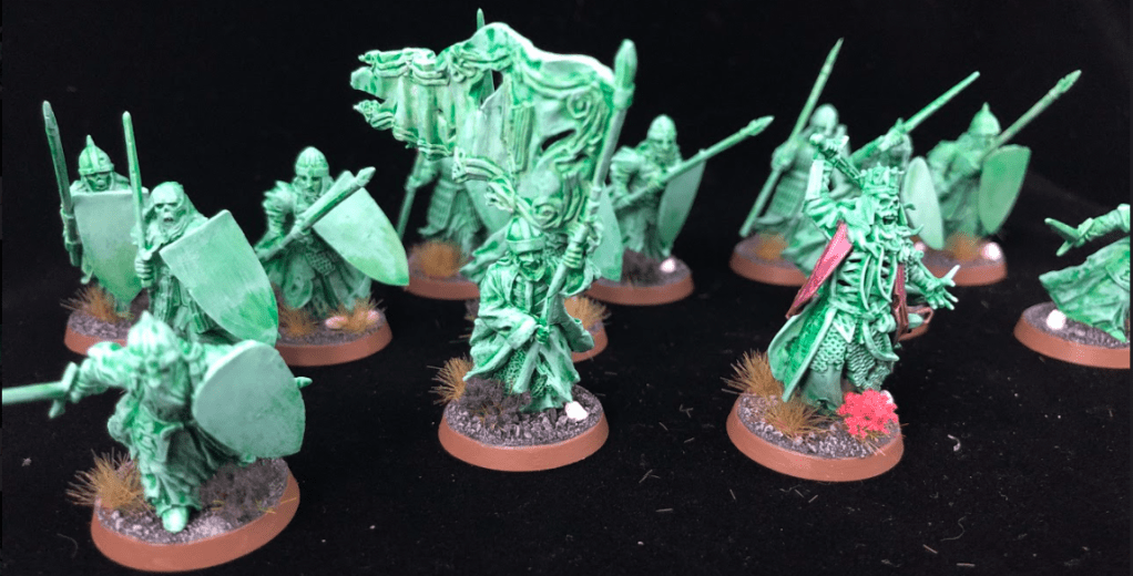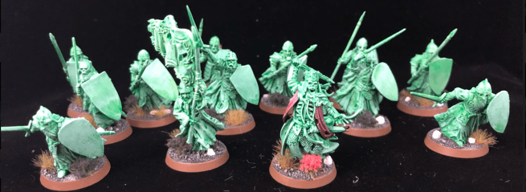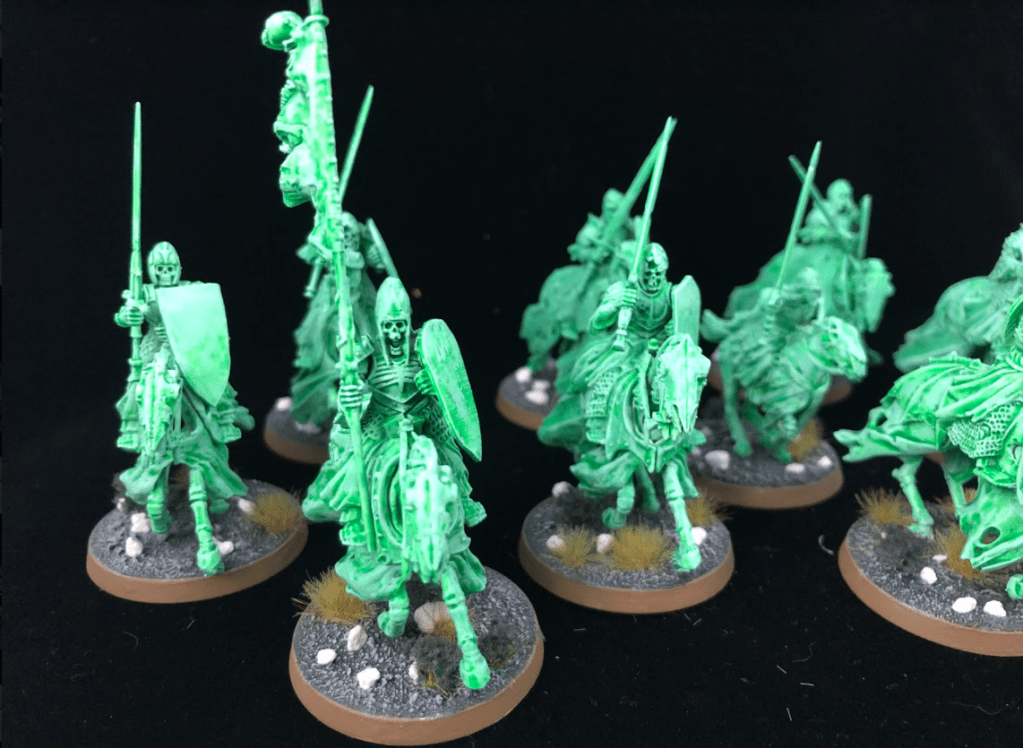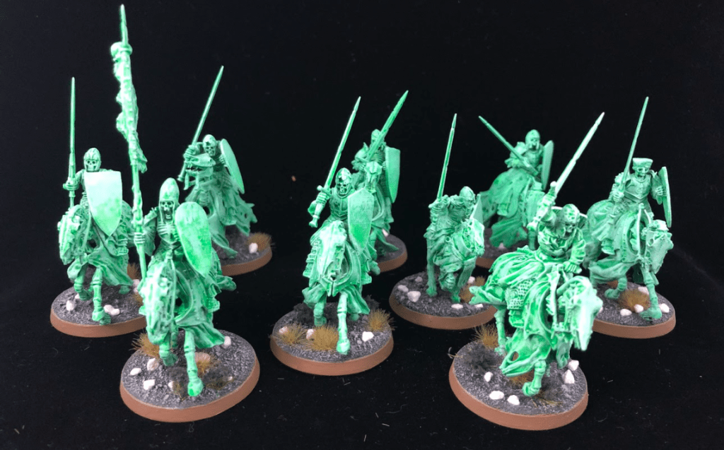 There you have it. Roughly 1,000 points of Riders of the Dead for the Middle Earth Strategy Battle Game. They are light on special rules and only have three entries in the whole army list so I think they will be really good to learn the game some more. I’m sure their limitations and my poor generalship will result in many losses but they’ll look cool and I painted an entire army in roughly two months, excluding the six week delay waiting for GW to ship models. And all in less time than it took Andrew to finish his Rohirrim. Sure his models look loads better and involve more than five colors but let’s ignore that for now!