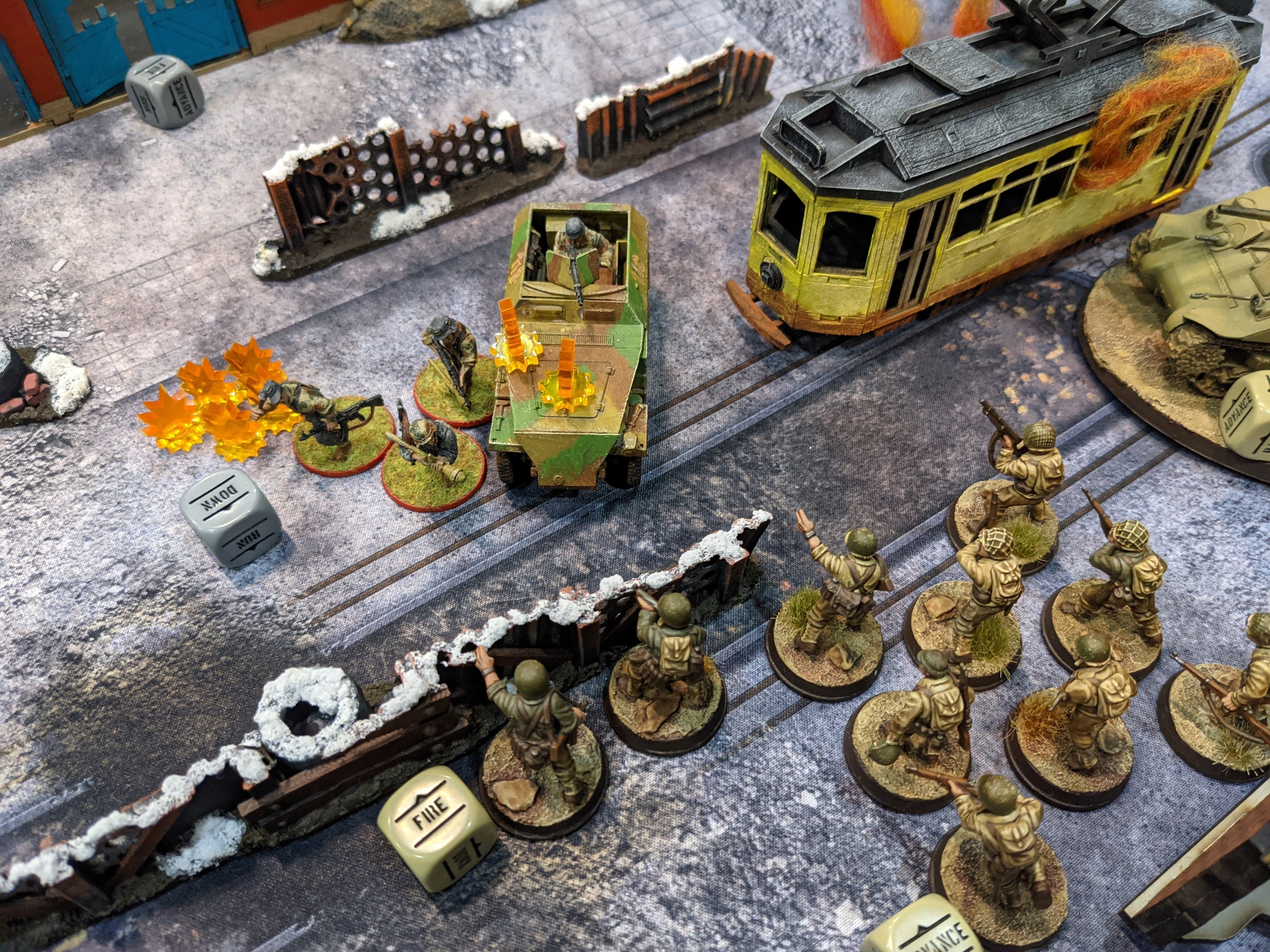 – Jeff rolled up a bicycle-mounted squad down a road and they let loose with a pair of panzerfausts at one of my Sherman tanks. Luckily, they missed but I’ve never seen anyone push with a bike squad like that. It was amazing! Also, a harsh lesson in the power of roads.