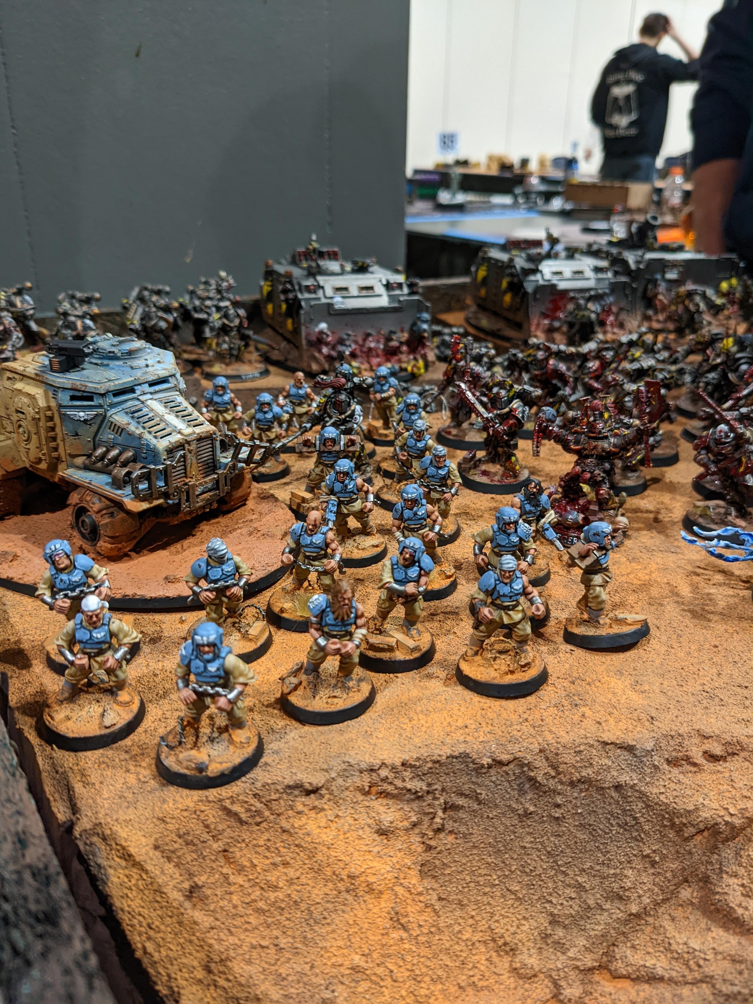 This was a strange one. An Attacker/Defender mission that left Nick and I completely on the back foot. We faced the combined might of a real Guard Tank Battalion supported by assault-heavy Primaris. Nick and I ended up as defenders (thinking it would give my artillery a chance to slow the enemy’s advance) but the small deployment zone forced us onto the backline with little room to maneuver.