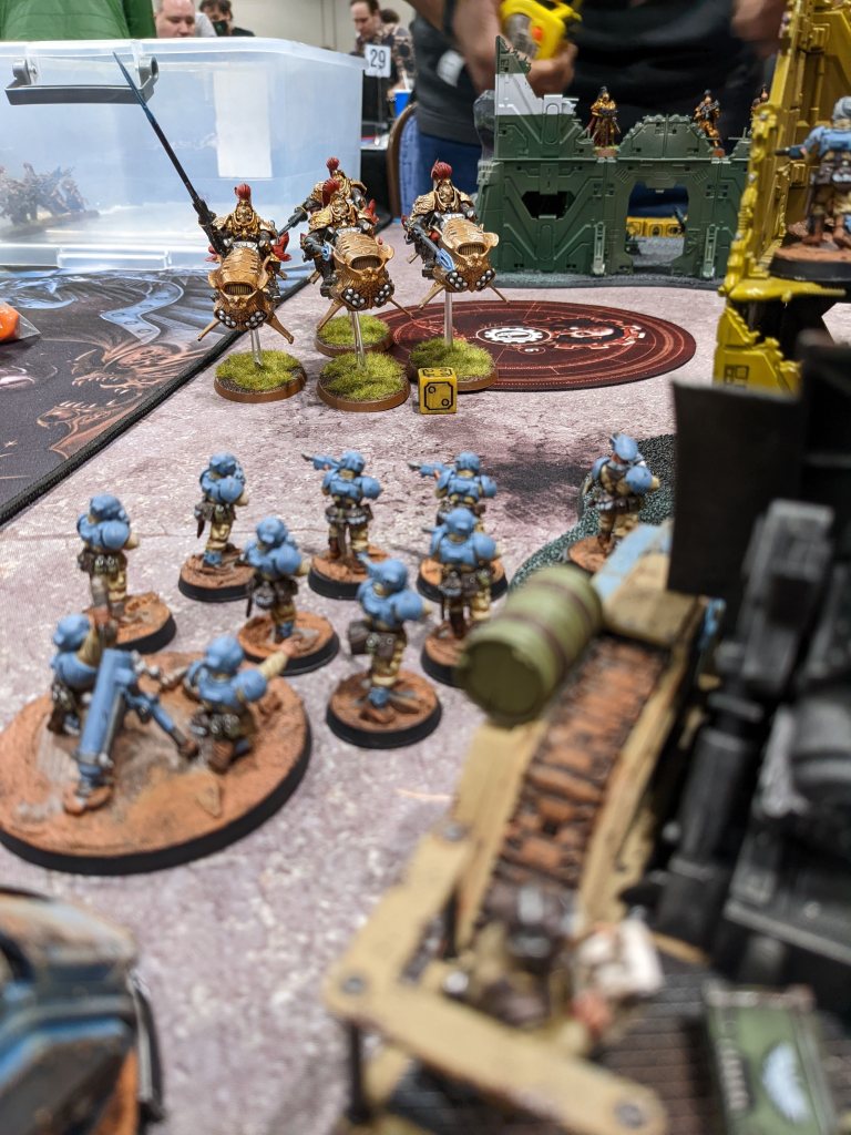 – Poor Mechanicus. Chris had two big units of Skitarii trapped in his back corner. That didn’t go too well for him. A few hot Medusa volleys thinned their numbers considerably. I would have expected higher resiliency from these tech adepts.
