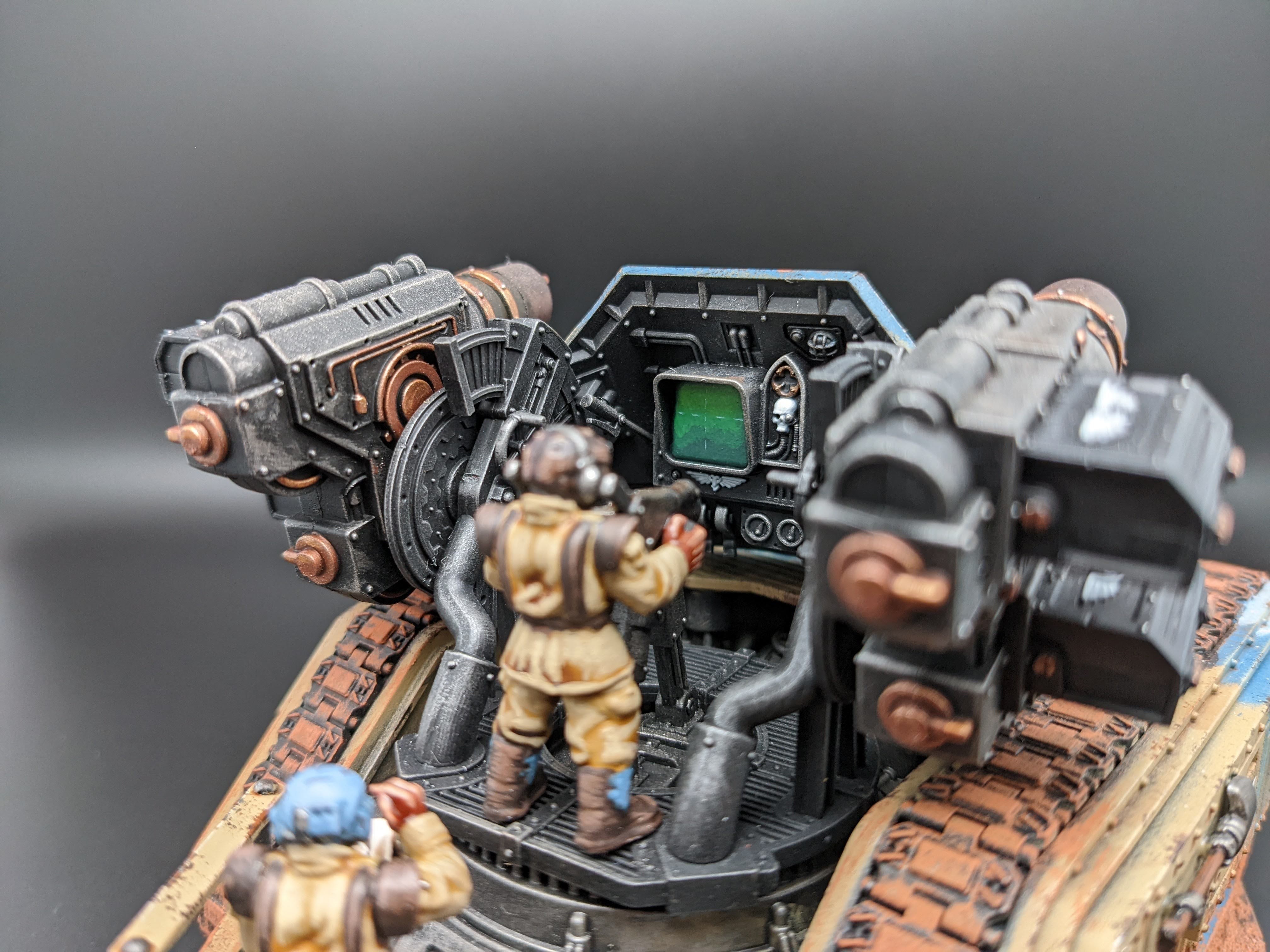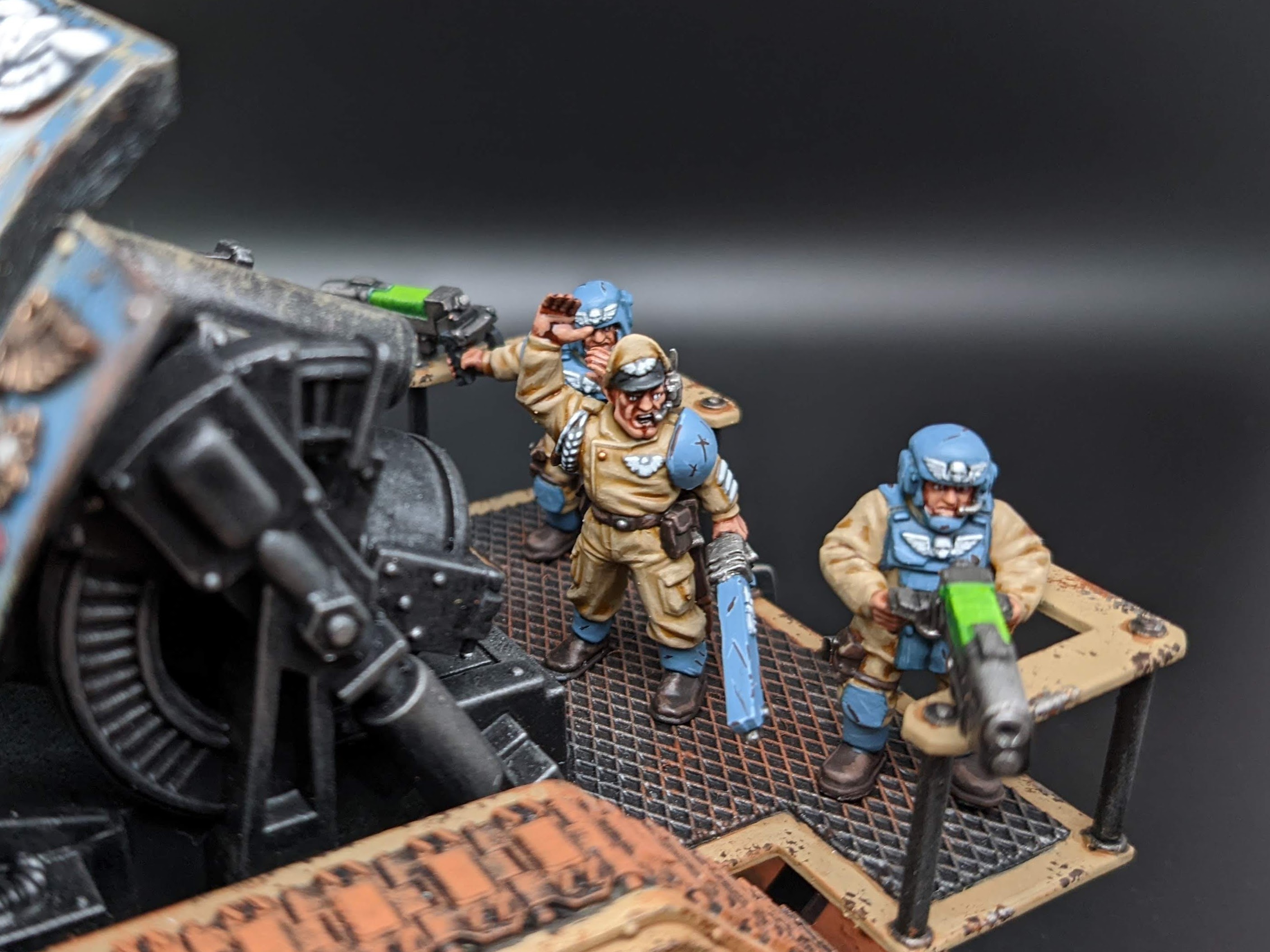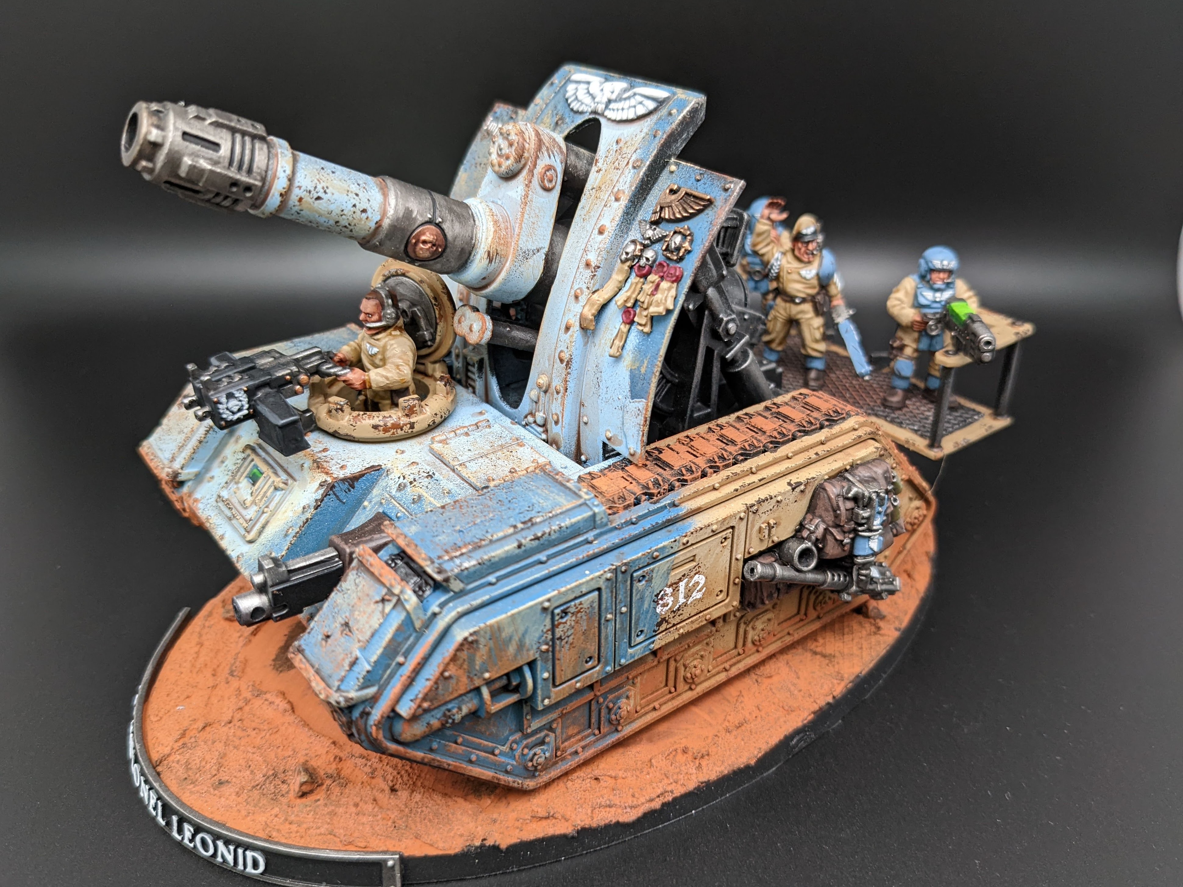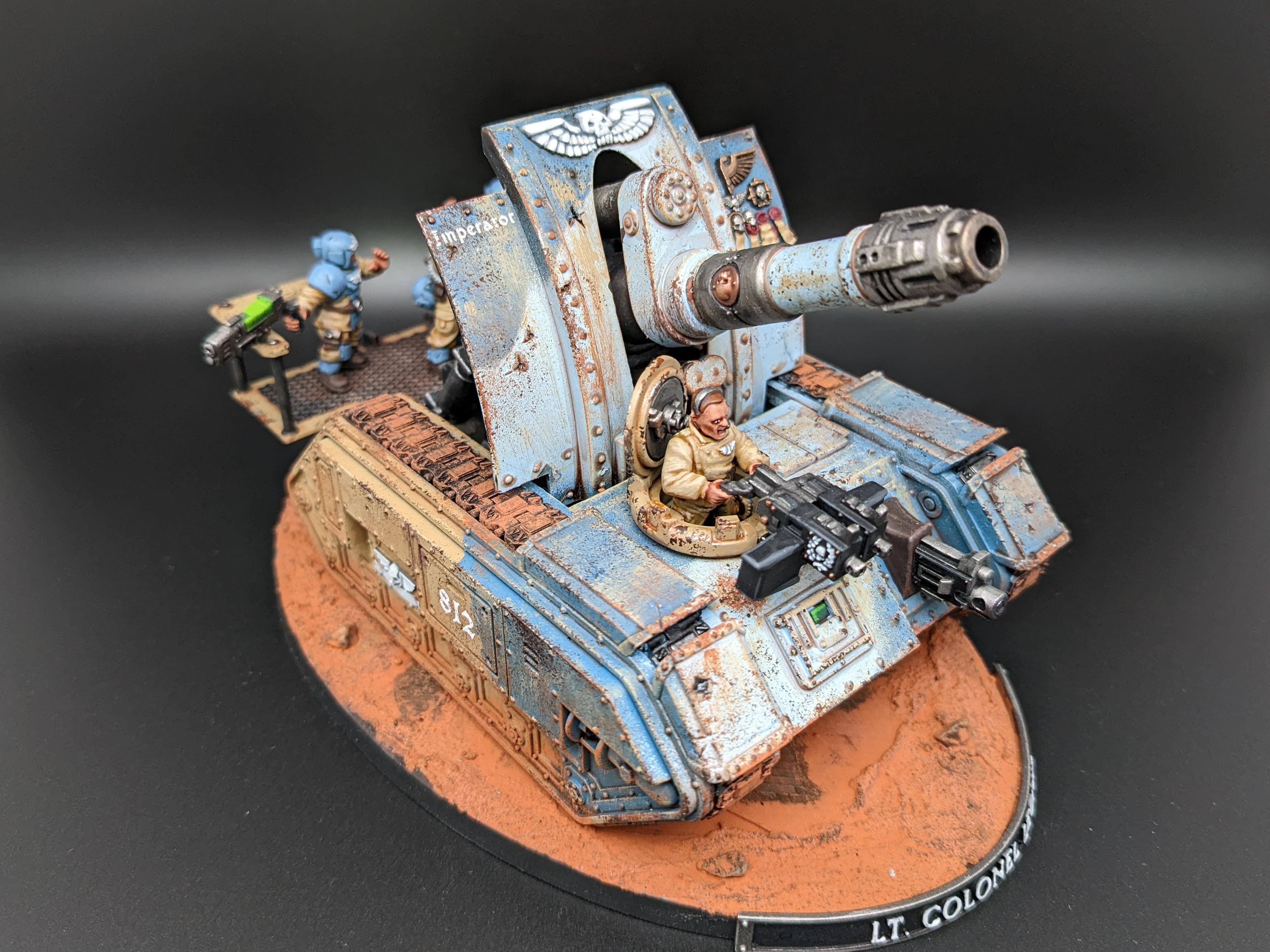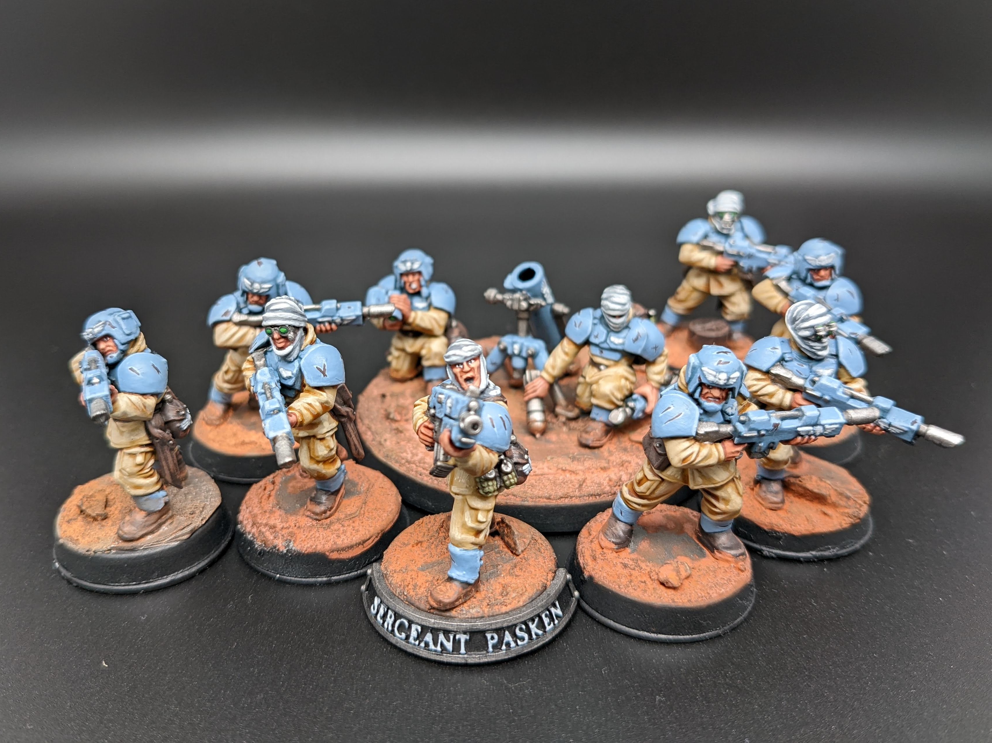 The models are all from Games Workshop with some additional heads and torsos from Mad Robot. The nameplates are custom orders from Versatile Terrain. The Tank Commander conversion was created by Nick at Regum Auratis.