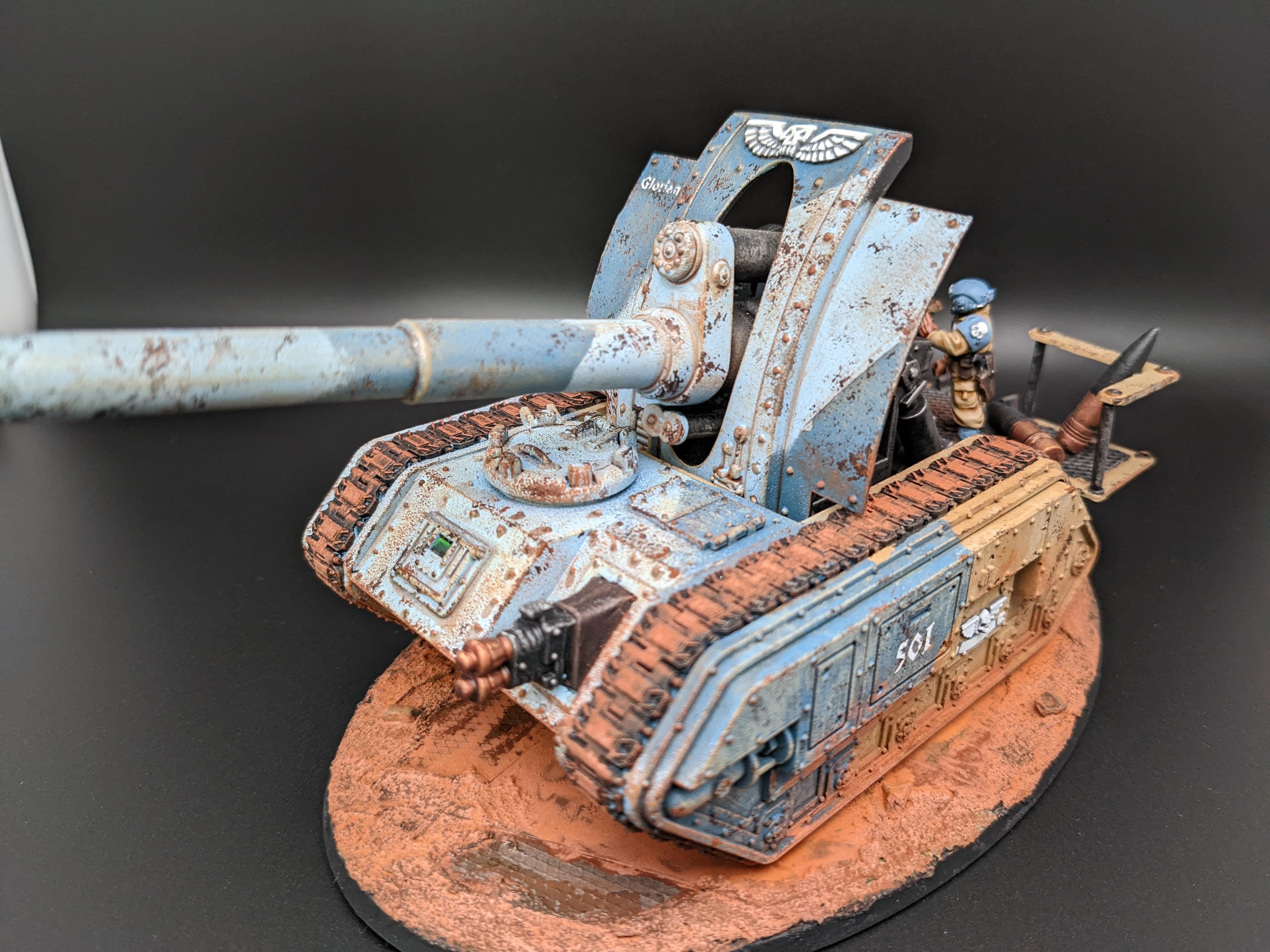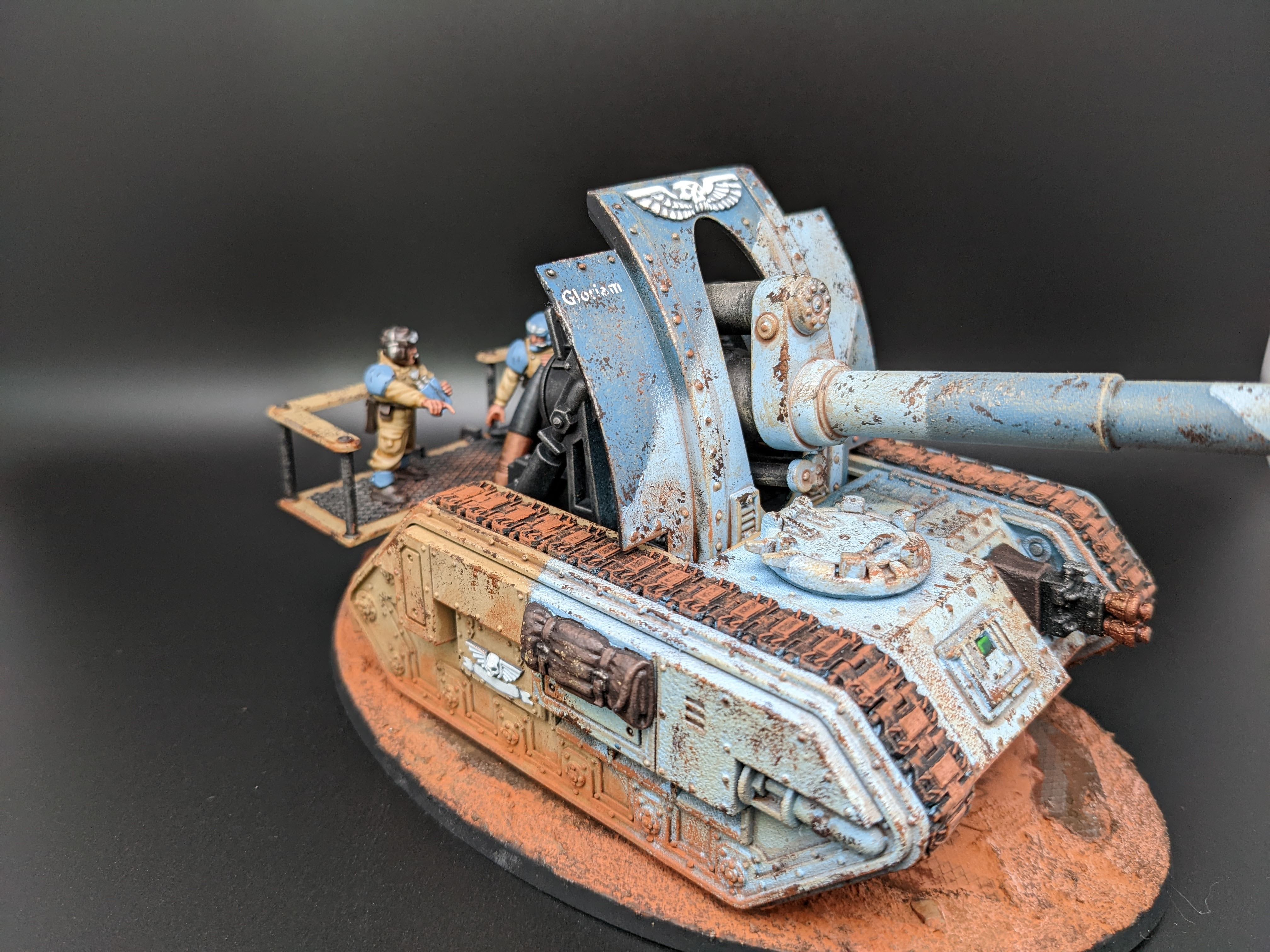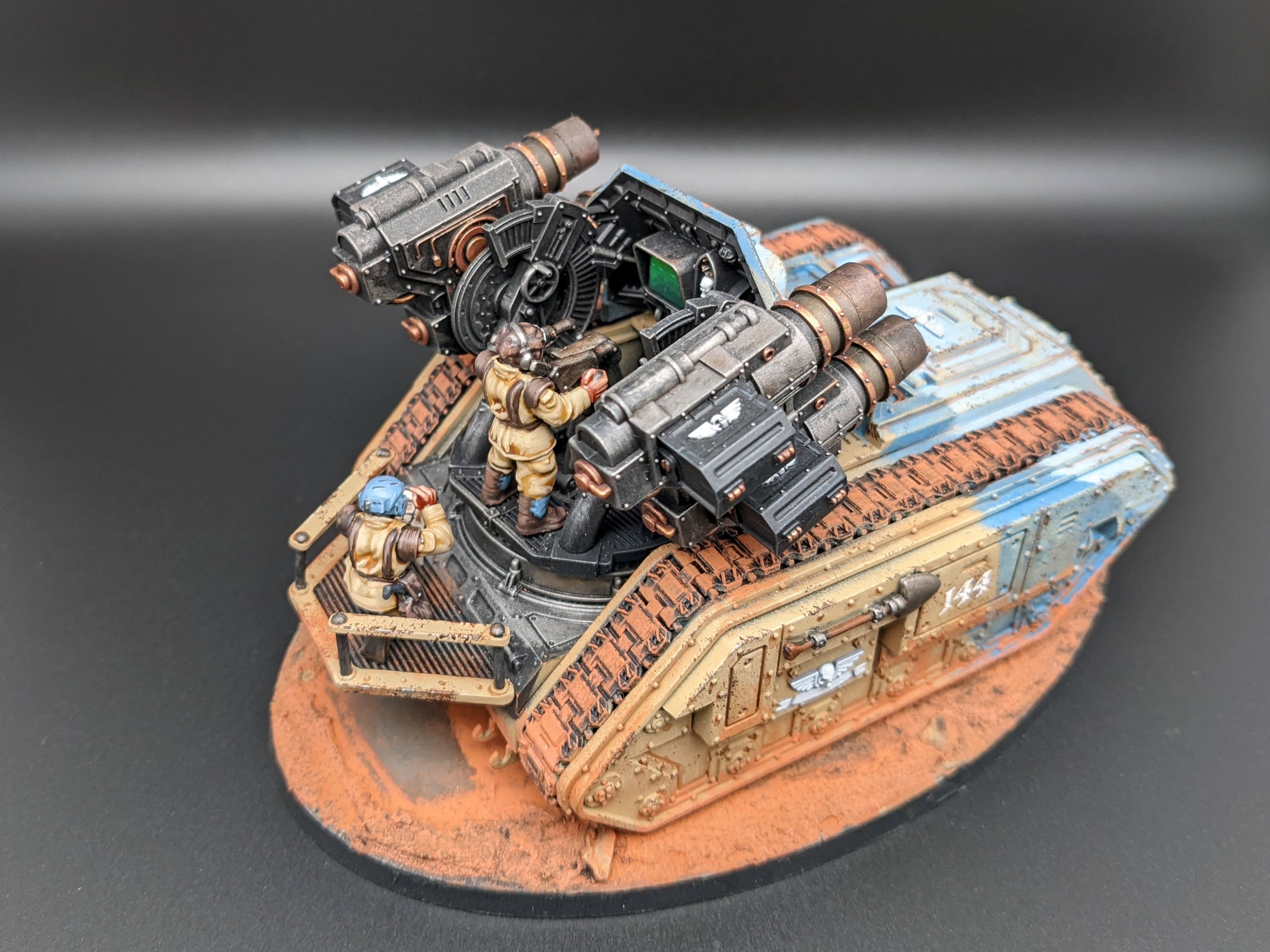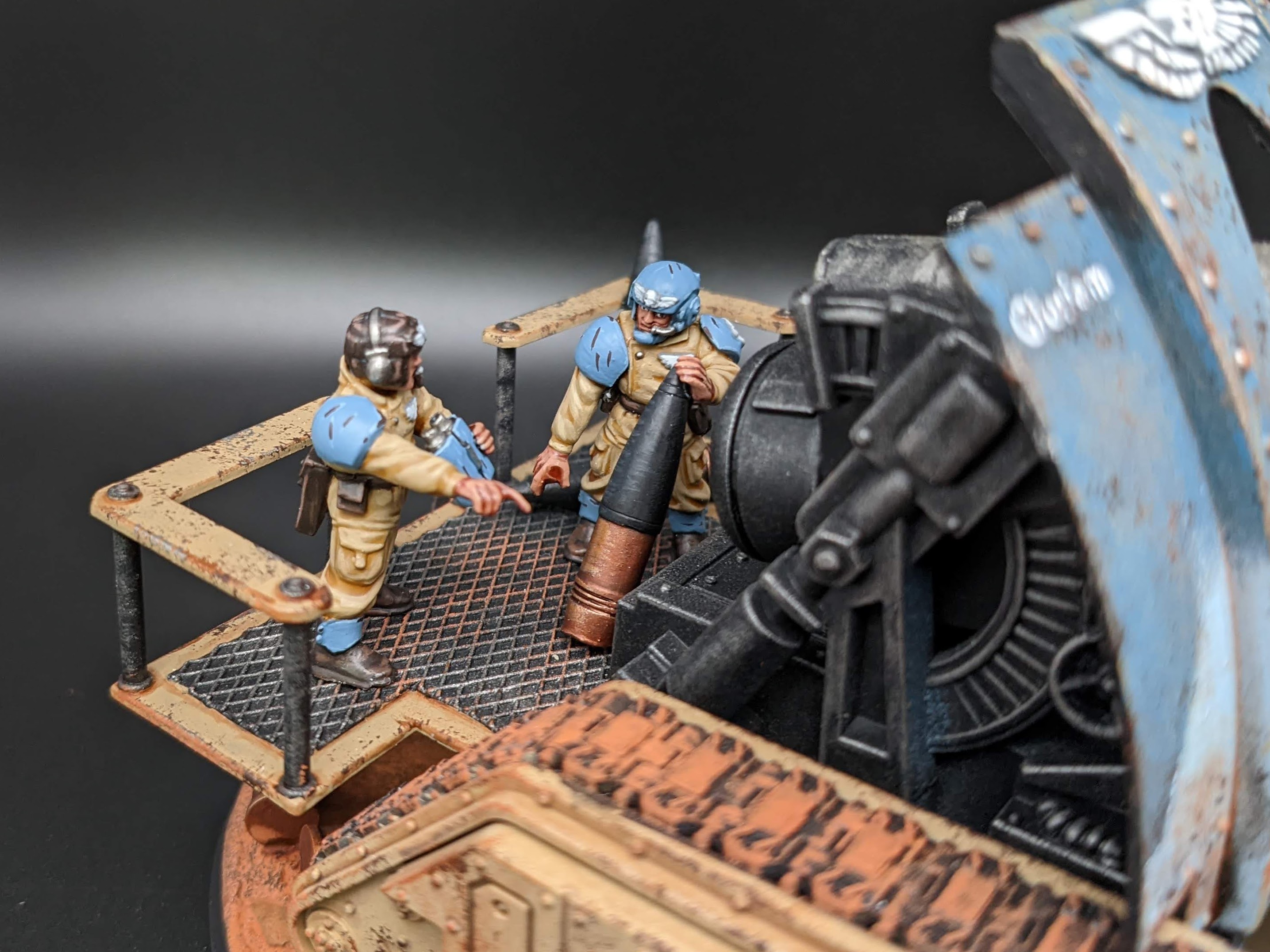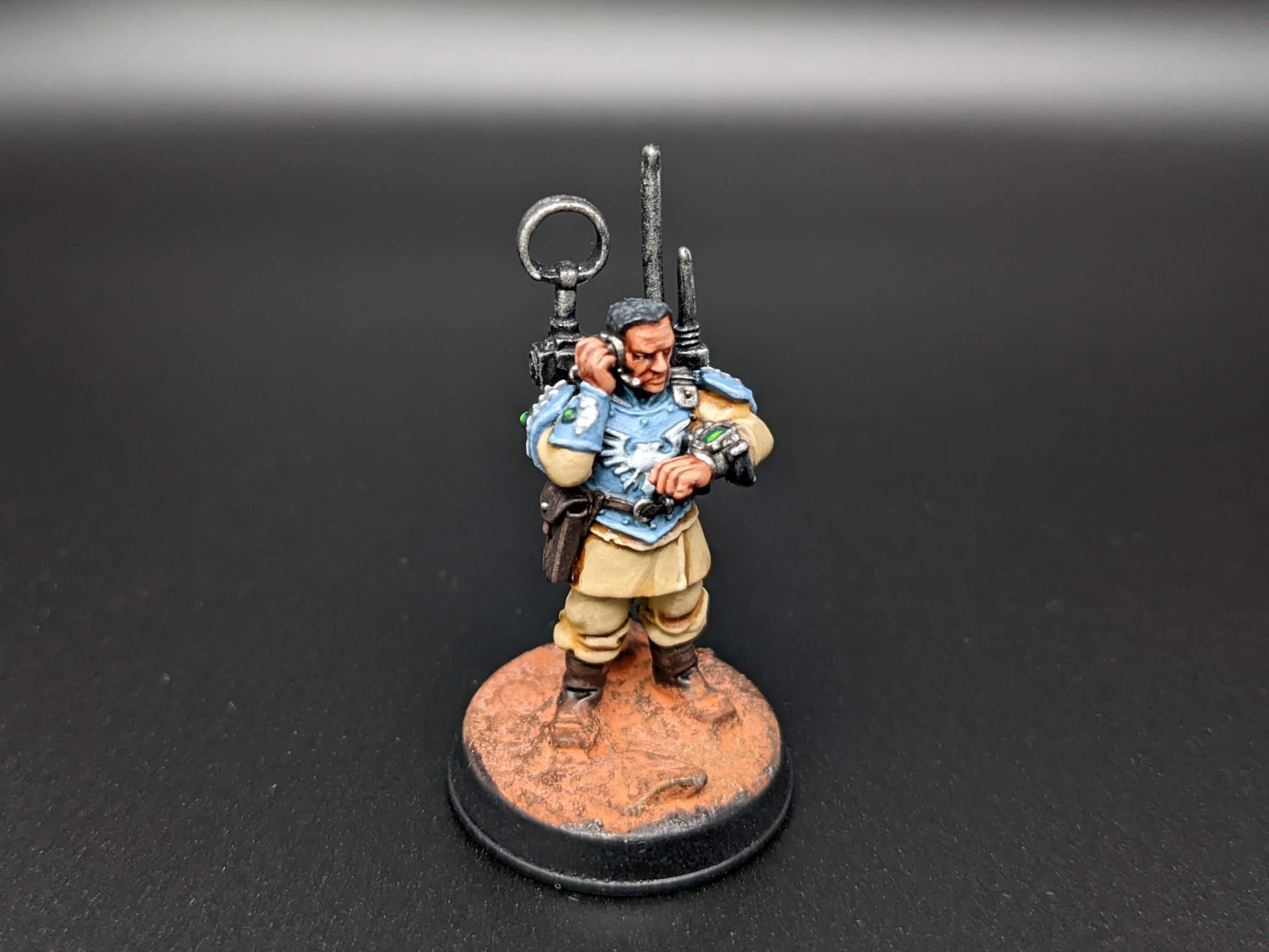 The models are all from Games Workshop with some additional heads and torsos from Mad Robot. The nameplates are custom orders from Versatile Terrain. The Tank Commander conversion was created by Nick at Regum Auratis.