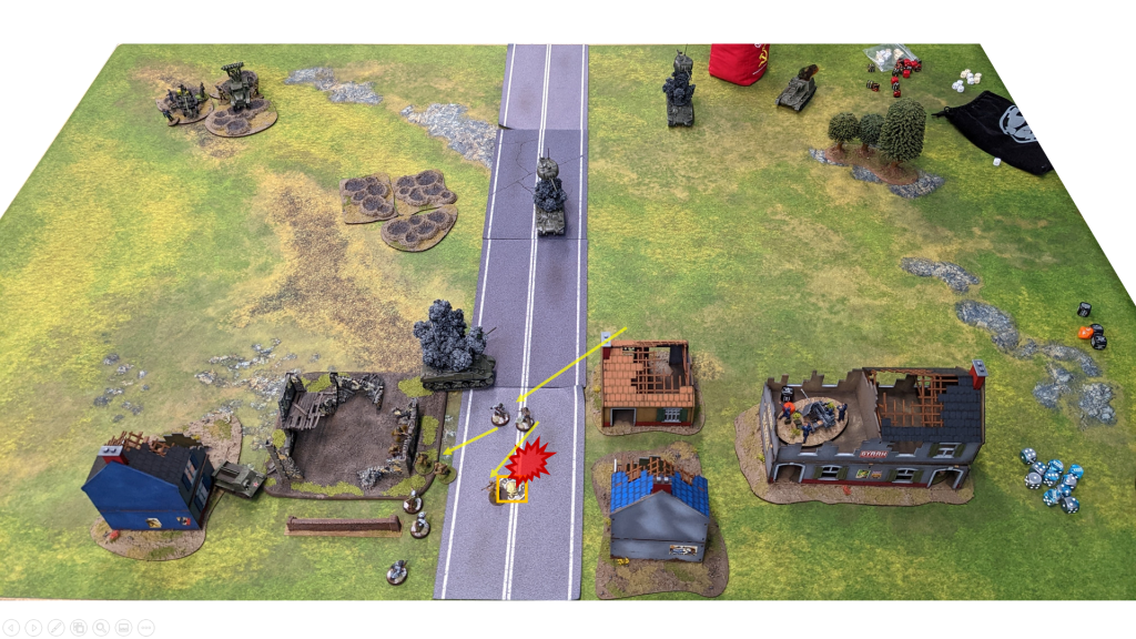 - The forward 88 once again hit the SU-76. This time the shot ignited the SPG on fire and it failed it’s -4 Morale Test.