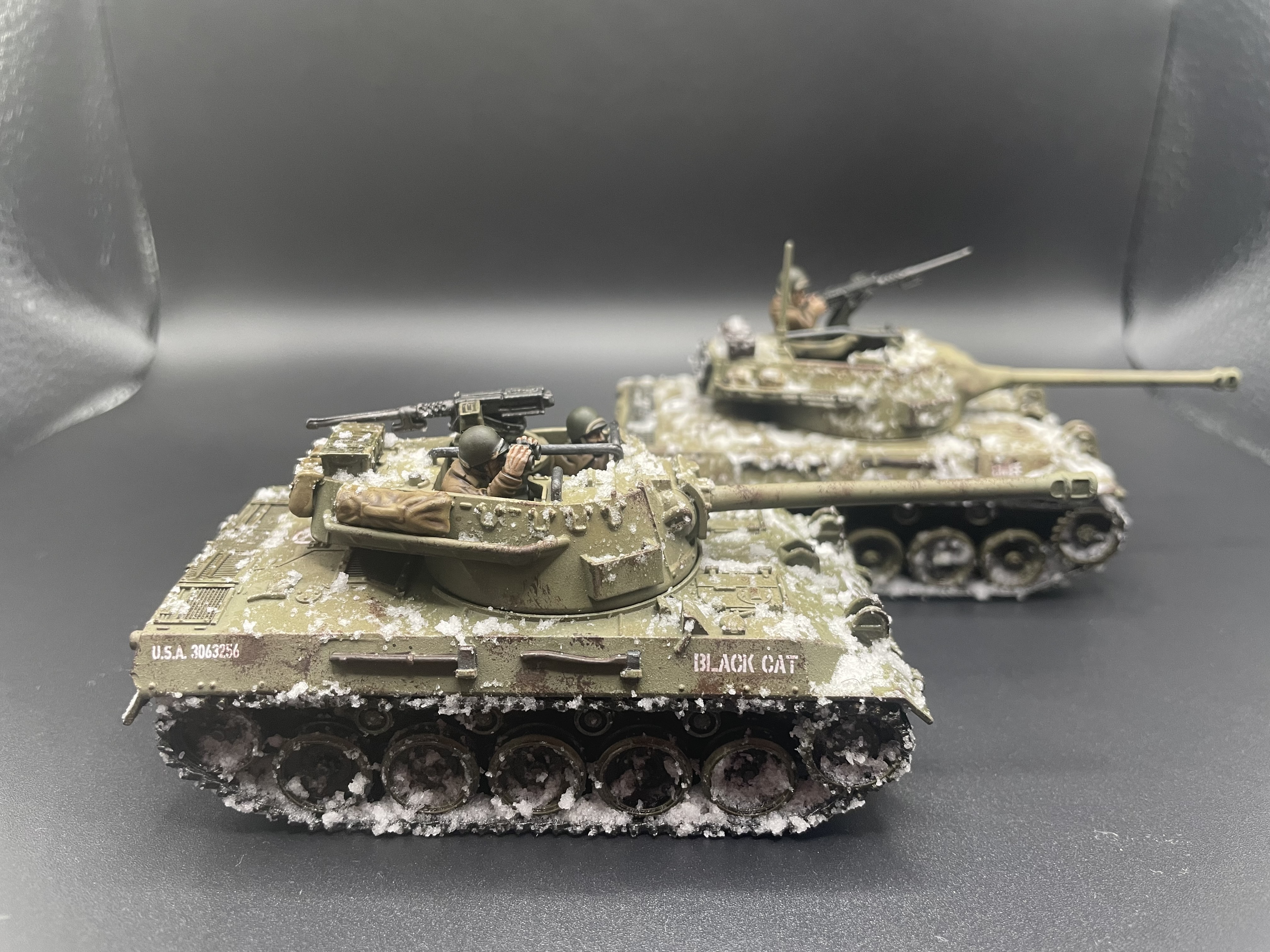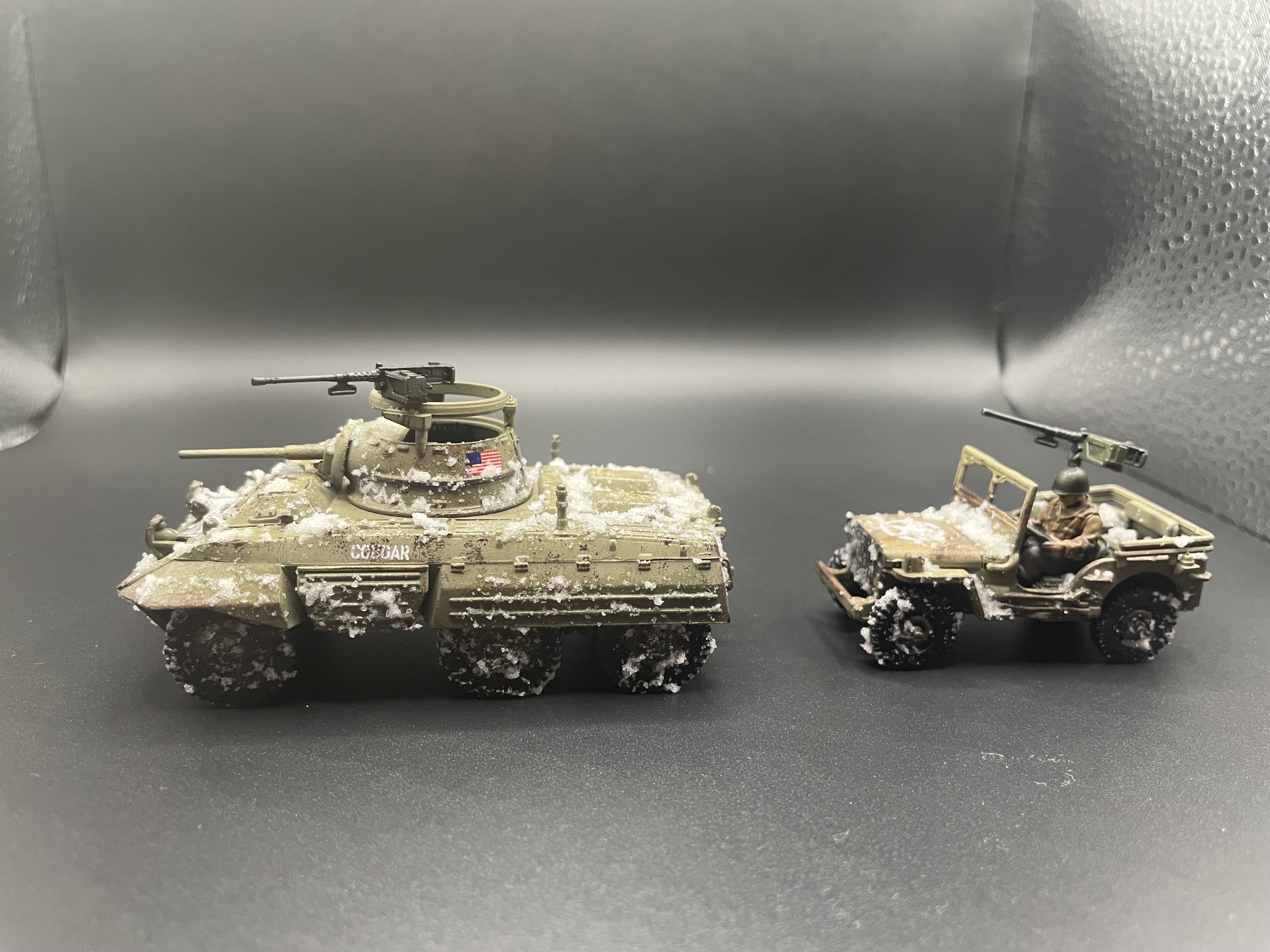 I do have some additional tweaks and additions that I want to make to this force over time, including adding some more crew/passengers in the tanks and jeeps and possibly whitewashing the canvas covers over the gun mantlets on two of the Hellcats to match some photos I’ve seen of vehicles from the period. With that being said however, still very happy with how they turned out, and look forward to expanding on my Battle of the Bulge forces in the future.