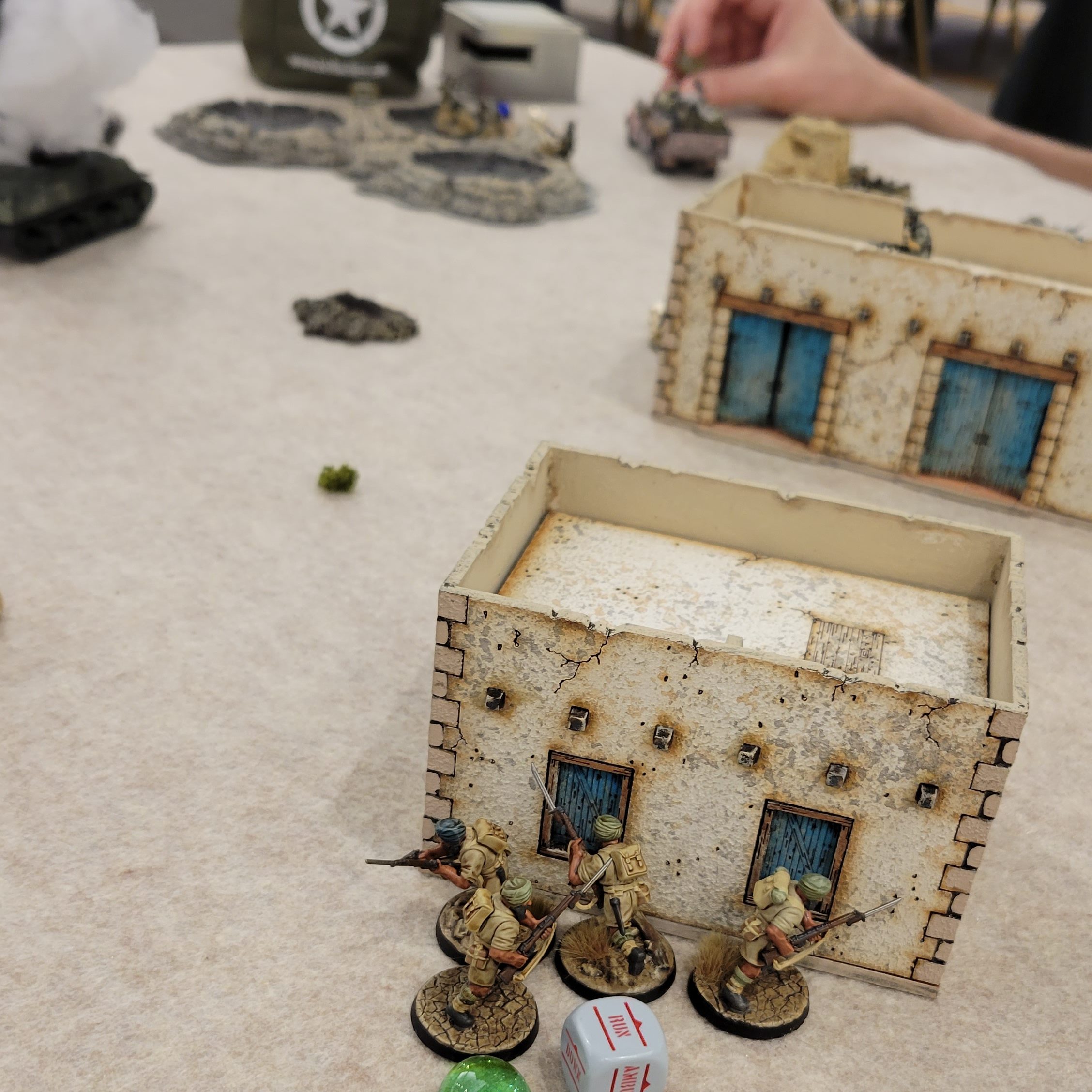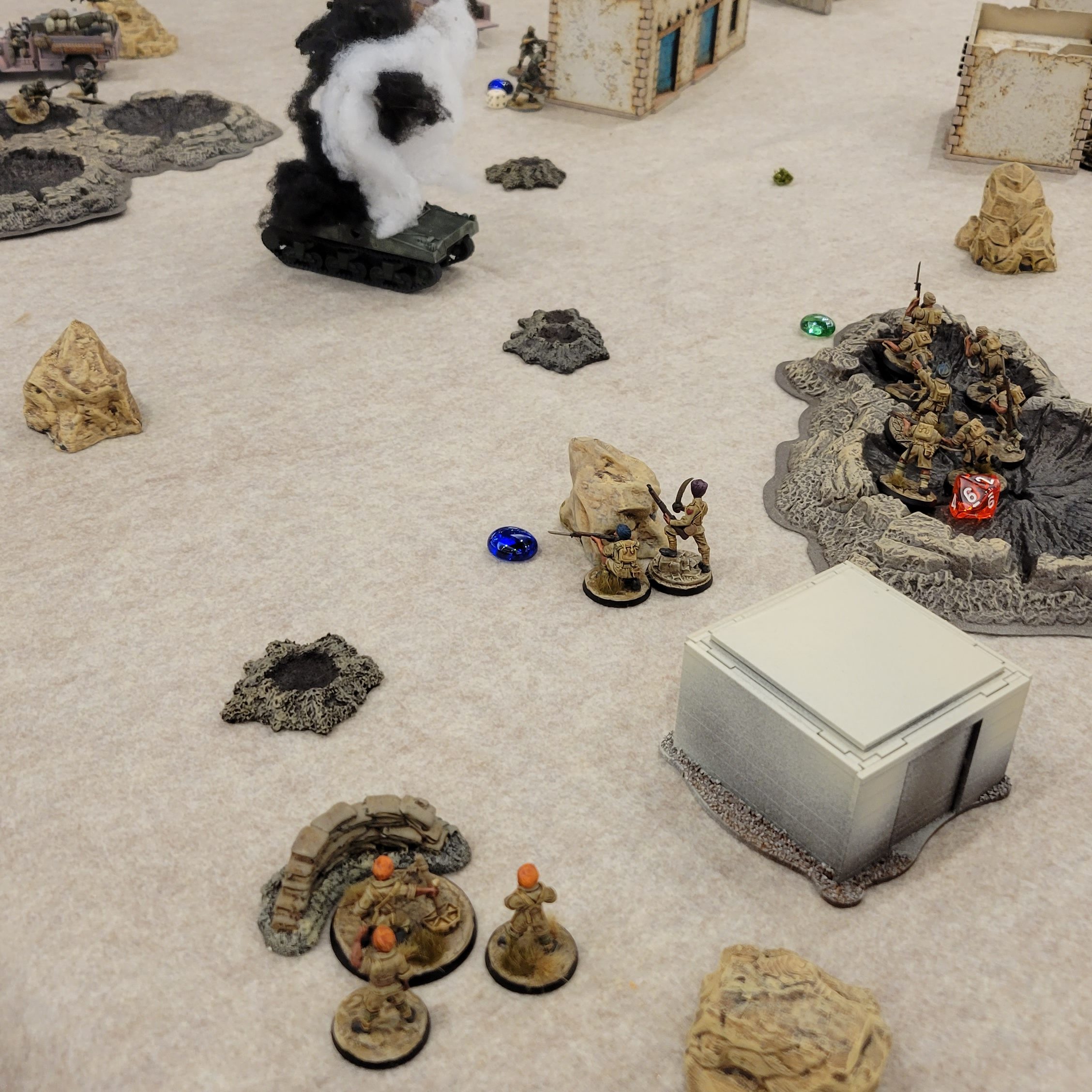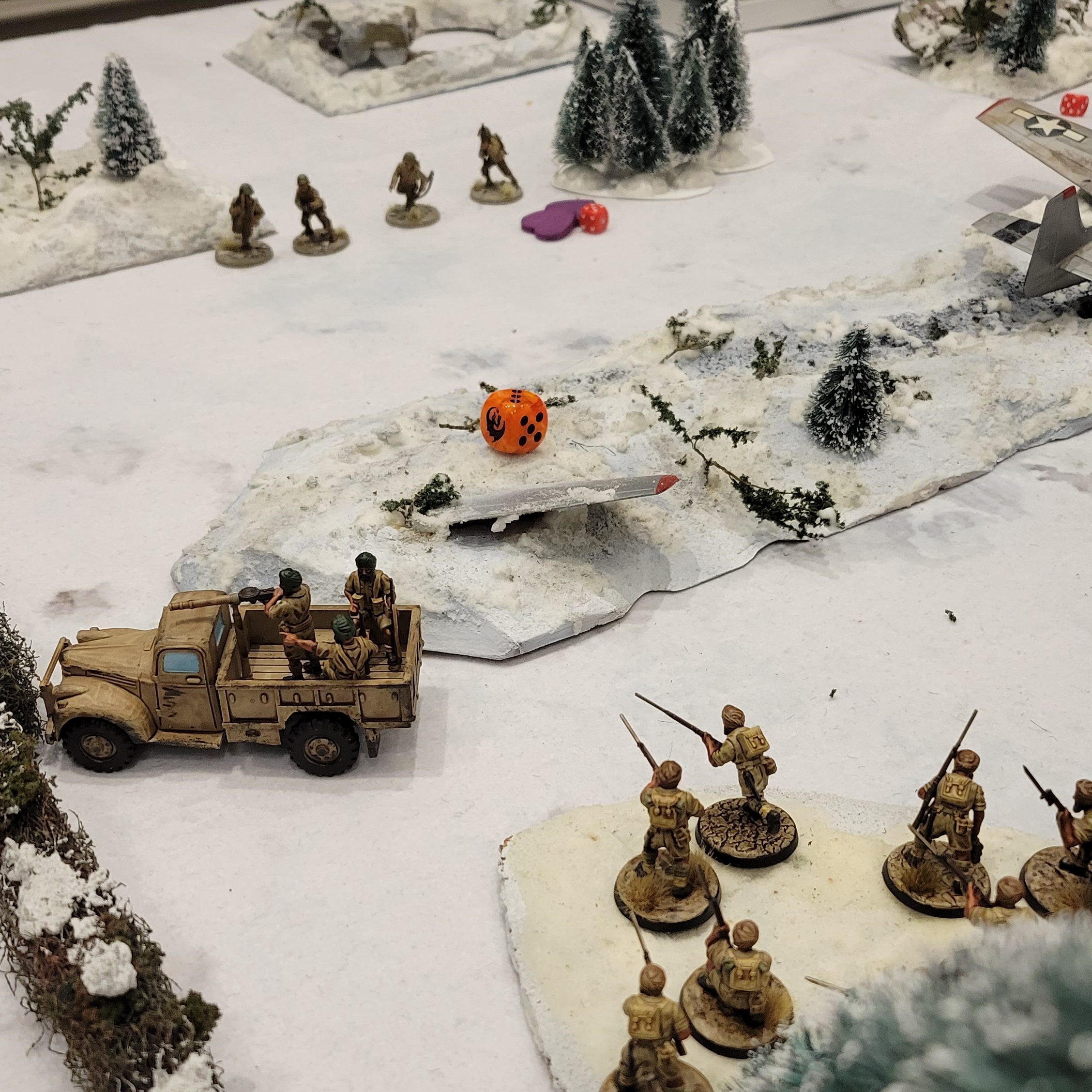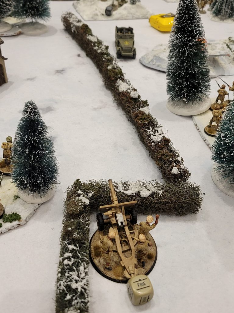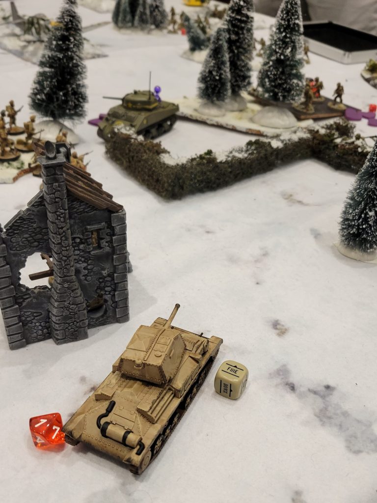 We played through Turn 4, which mostly consisted of my units mopping up the remaining, heavily damaged American infantry. Despite the rather one-sided result, Tom was a tremendously gracious and fun opponent. At the end of a long day of gaming we were both happy to laugh at the absurdity of North African Americans and British facing off on a snowy battlefield – FUBAR indeed!