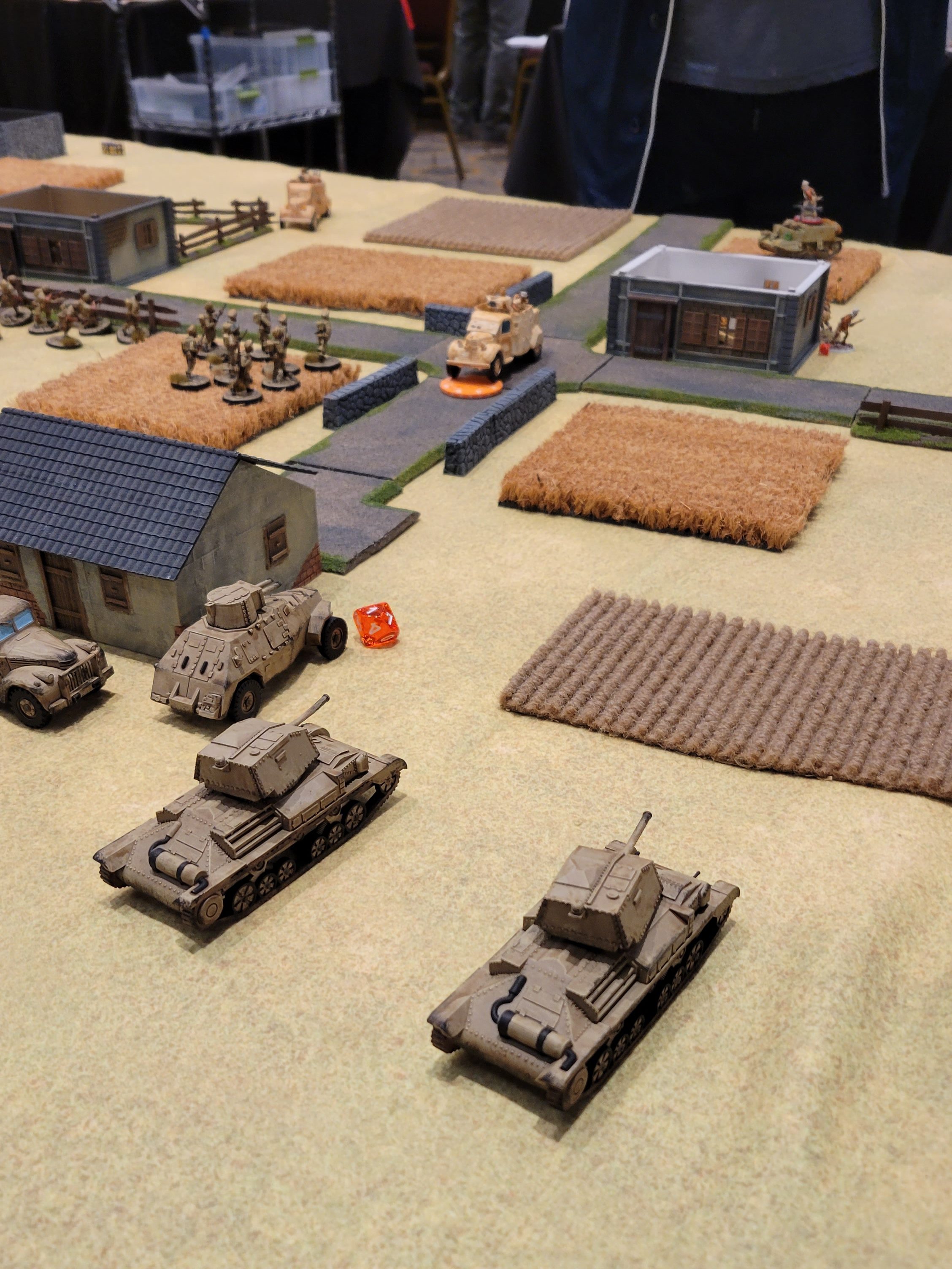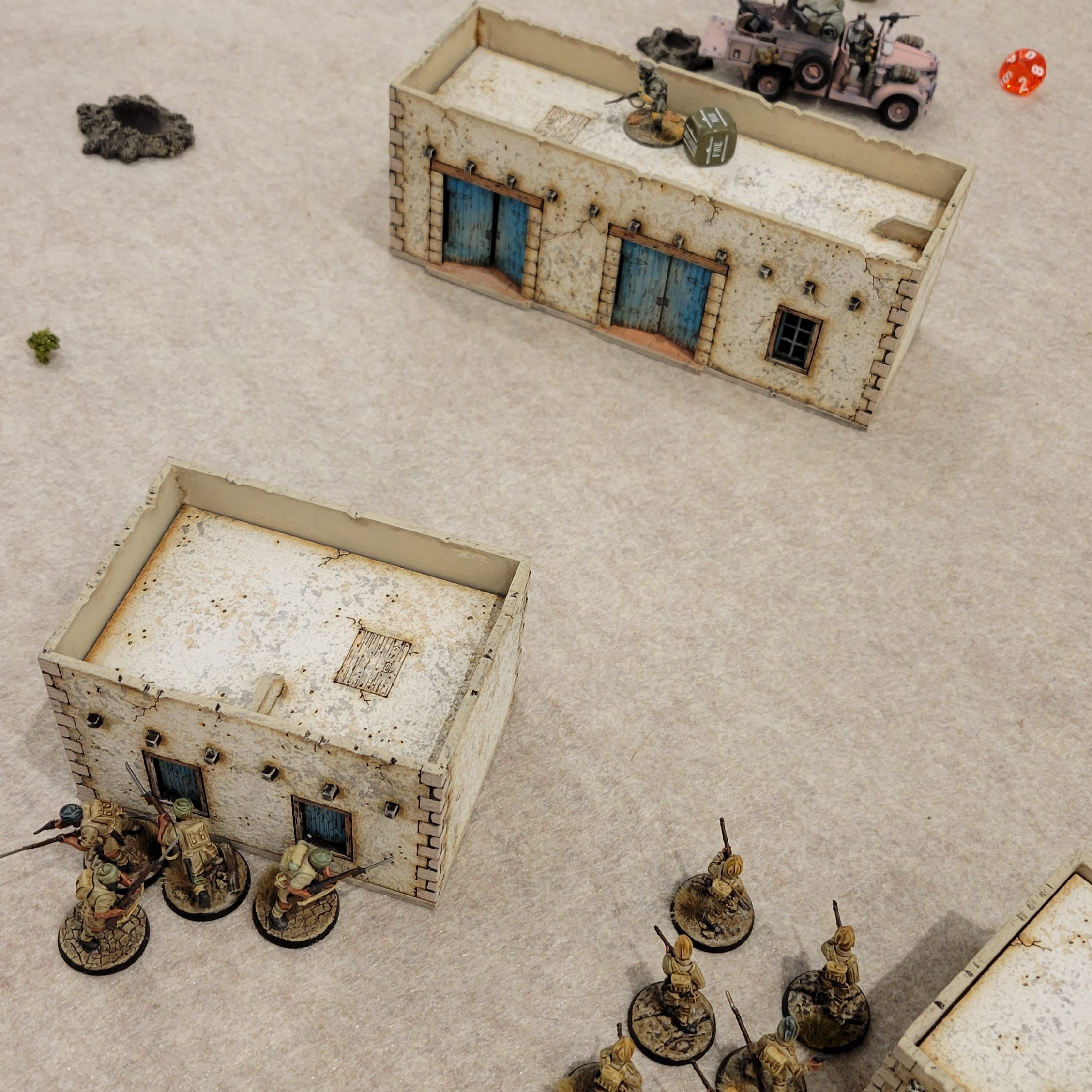 Al’s North Africa Free French force consisted of a 1st Lt, two five-man Foreign Legion Veteran Infantry sections, a Marksman, two Dodge Tanake Armored Cars, two 25-pounders, and two Bren Carriers with hull and pintle LMGs. I was looking forward to playing against Al. We’ve been at several of the same events over the last couple of years but have yet to play against each other, so we set up this game as a Grudge Match.