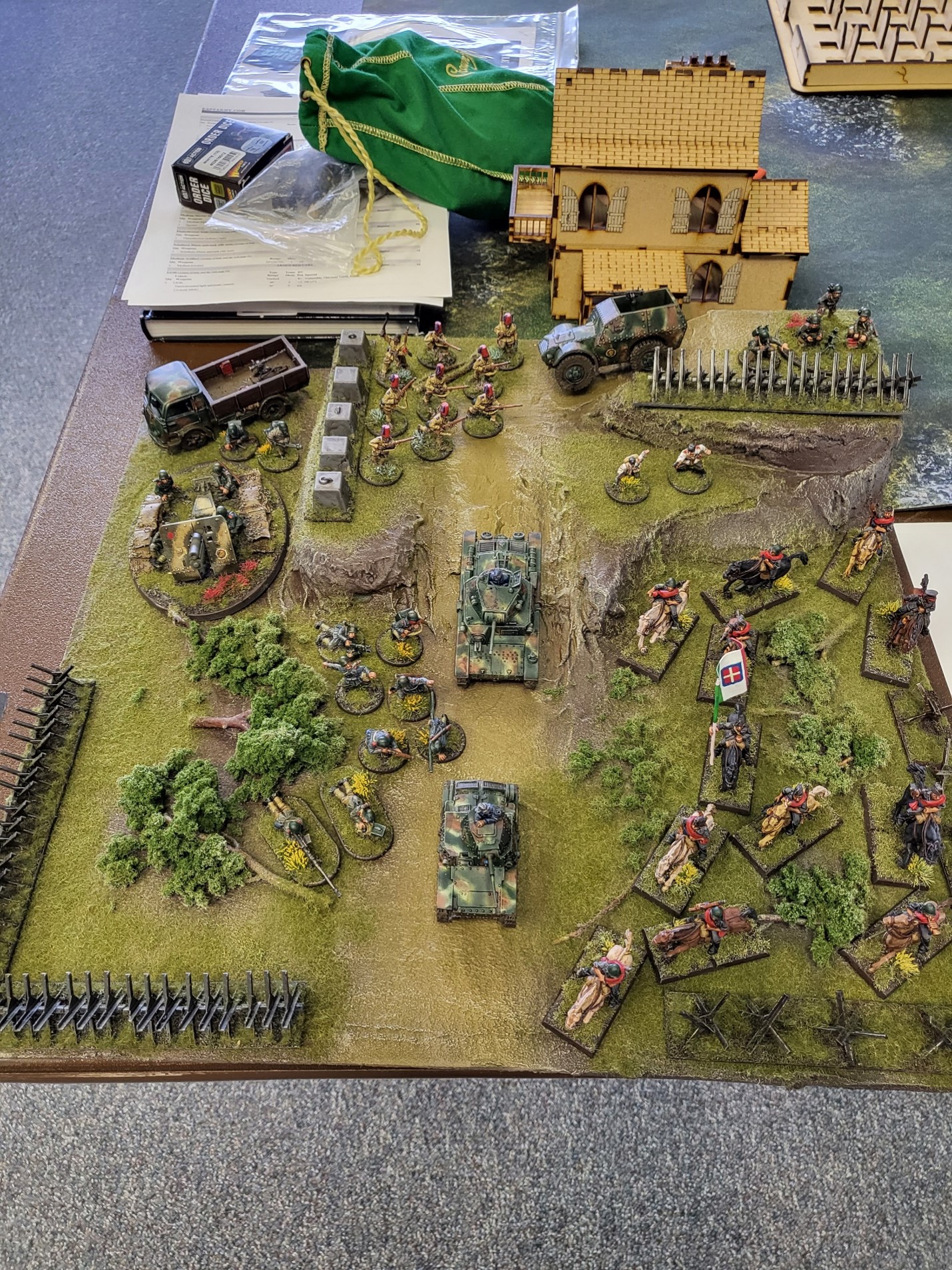 I wanted the focus of my army to be the two Cavalry units – inspired by the heroic charge of the Savoia Cavalleria at Izbushensky on the Eastern Front. I also opted to include some Carabinieri Military Police to take advantage of their Traffic Direction ability. I like putting vehicles in Reserve and wanted to ensure my tanks didn’t arrive late to the fight!