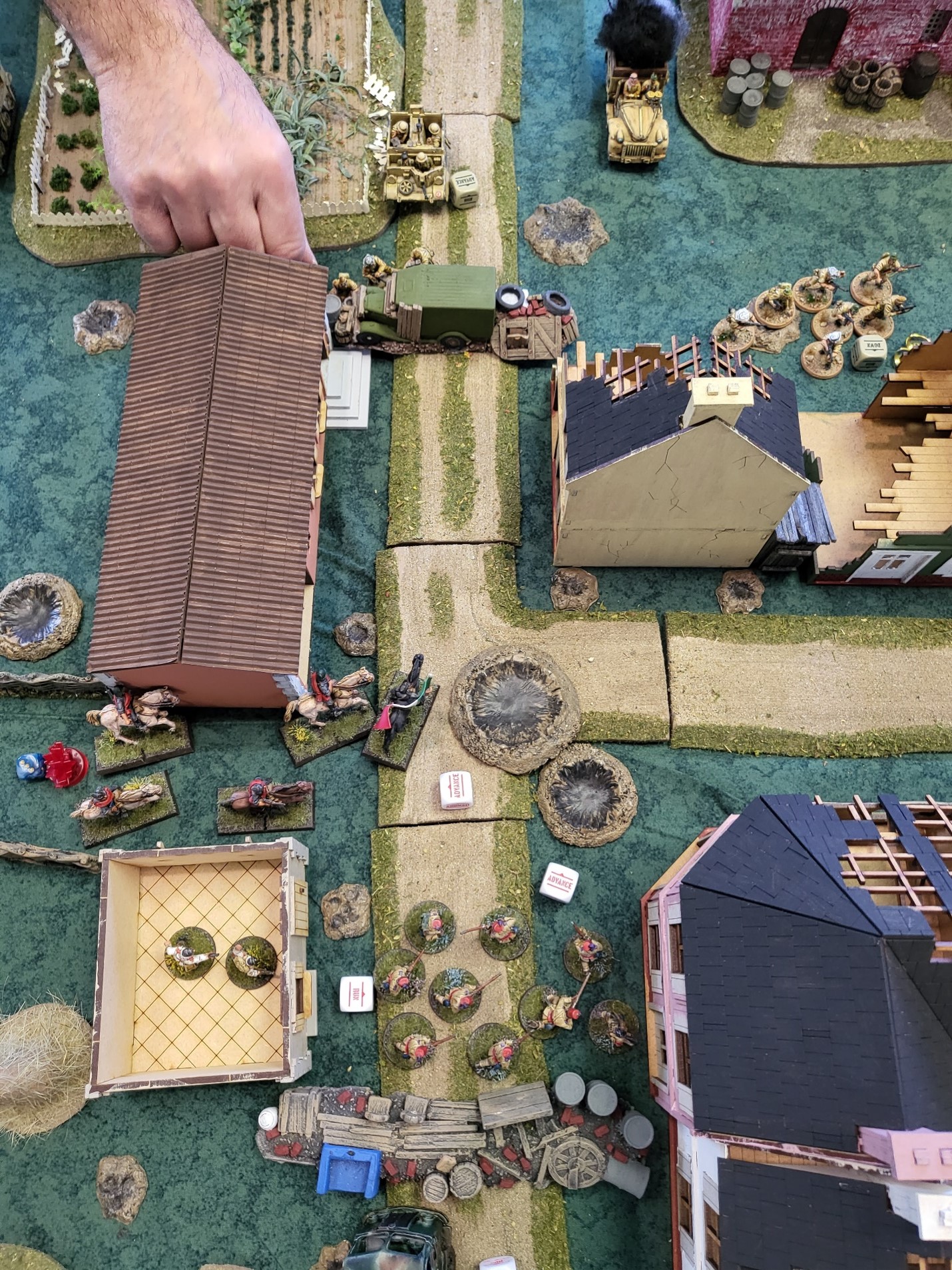 Turn 2 saw our Reserves come in with my Carabinieri really pulling their weight as I rolled exactly 9s for my vehicles to come on and without their Traffic Direction, the vehicles would have been held off this turn. My Cavalry pulled off a Turn 2 charge thanks to their boosted movement and some aggressive play from Chris allowing me to pull ahead and get into his backfield.