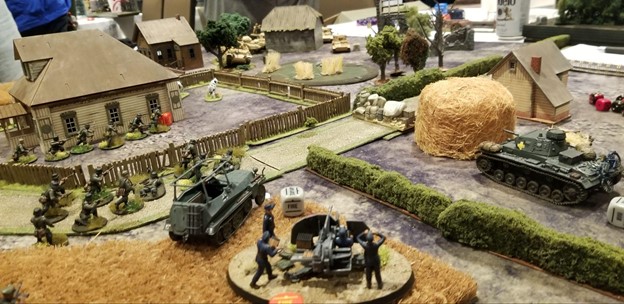 Game 2 we played against Jesse and Sean. Two great guys from Minnesota who were running a mechanized 251 Hanomag list and foot Platoon with a Panzer II, Flak 88, Forward Observer, two SS squads in 251s, MMG team, 222, and three Regular Heer squads with two LTs.