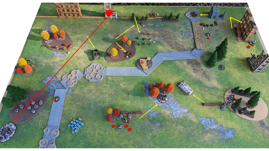 - Grenadiers on the right flank send LMG shots into the Soviet MMG Team and mange to kill one of the weapon crew.