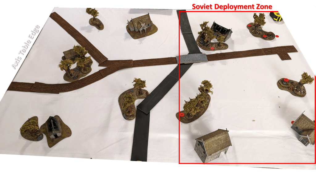 Axis: Ended the game with no units within 12″ of the Soviet table edge.