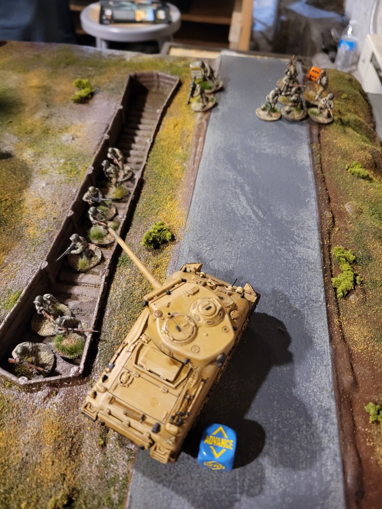 My Combat Patrol list was intended to still be themed similarly to the following lists, with US infantry supported by light armored vehicles. I brought my Lt, two squads of infantry, and then an M16 MGMC halftrack and an M8 Greyhound.