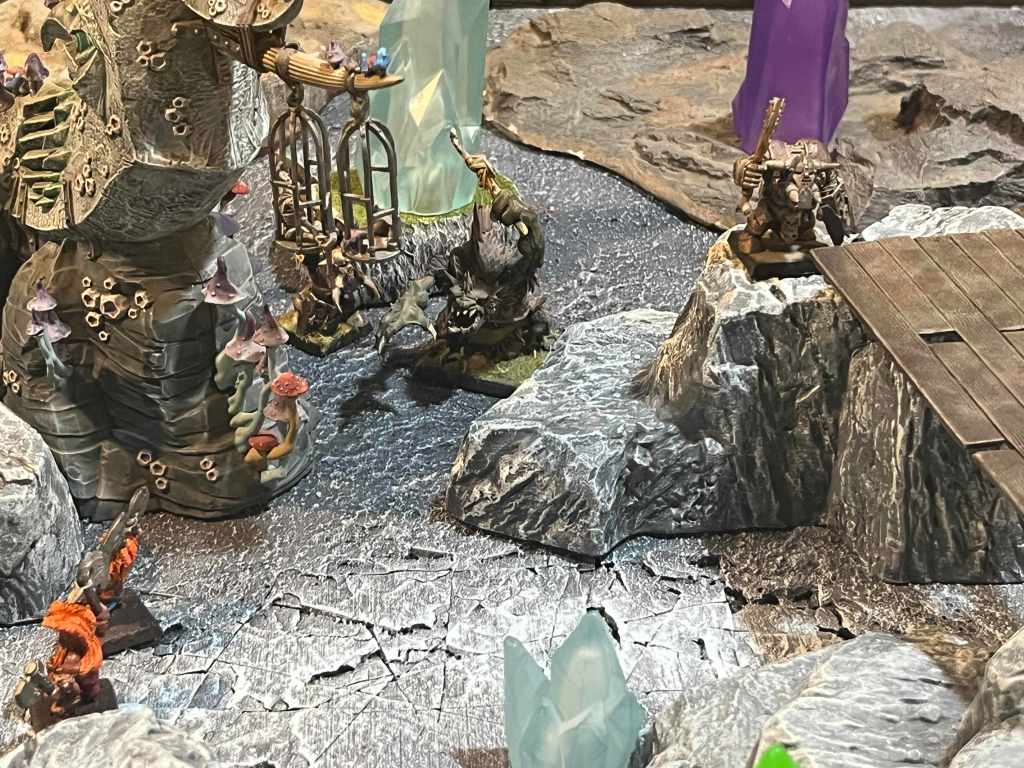 For Nogaz’s Black Orcs, the rewards of victory were sweet pocketing two shards of treasure (wyrdstone). The roll yielded nothing on the exploration table. With the treasure, the orcs had the good sense to buy (or maybe loot?) a sturdy helmet, adding it to their arsenal. But perhaps the most crucial part of the post-battle routine involved keeping Big Lenny in line. With his belly starting to rumble, the Black Orcs had to feed him something to stave off his appetite. Two more unfortunate gobbos were tossed to the troll, who happily devoured them, keeping him loyal – at least for the time being.