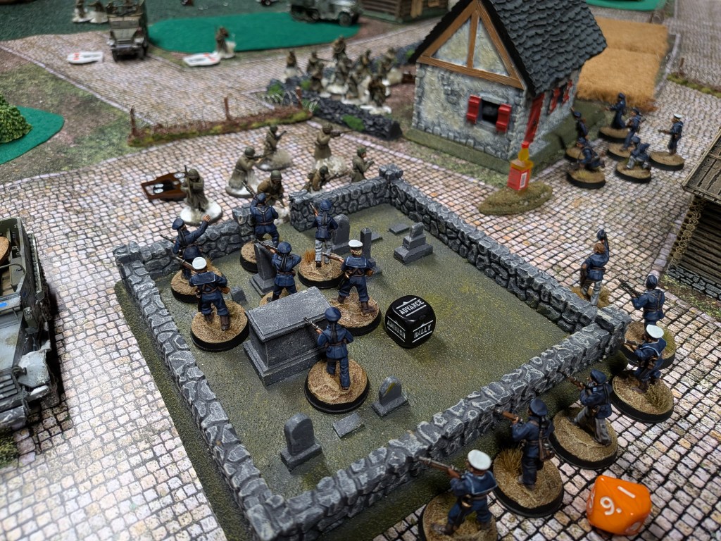 Shane’s objective disappeared at the end of Turn 2; I controlled the right and middle objective brining the score to an even 6-6. But without US control of the left Shane could no longer score and was forced to contest the middle – under the watch of three Kriegsmarine squads. Full marks to Shane for continuing the fight all the way to the bitter end. Two massive Company Commander Snap Tos had a chance to swing the game back in favor of the US, but a few critical missed shots left them exposed. A tense game for the first half that swung into full German control.