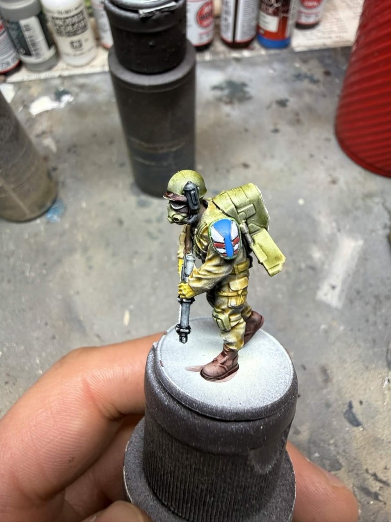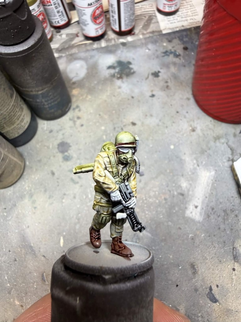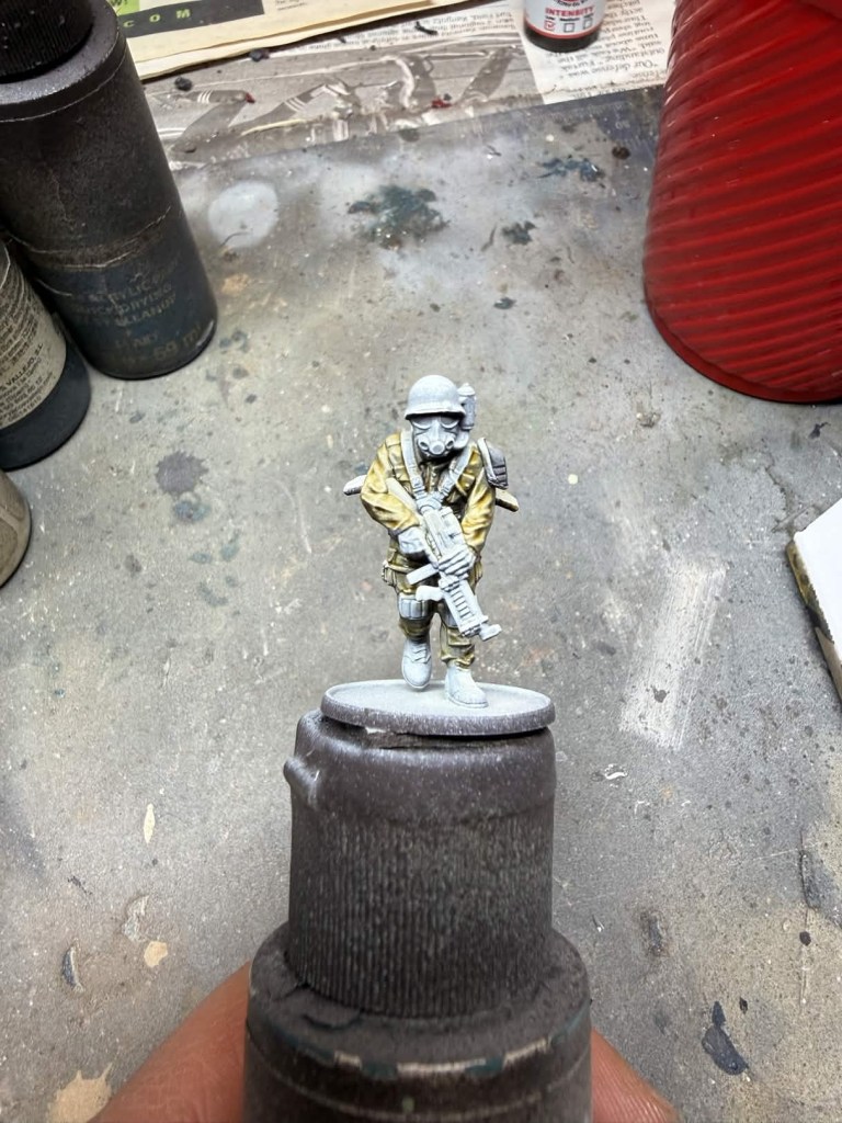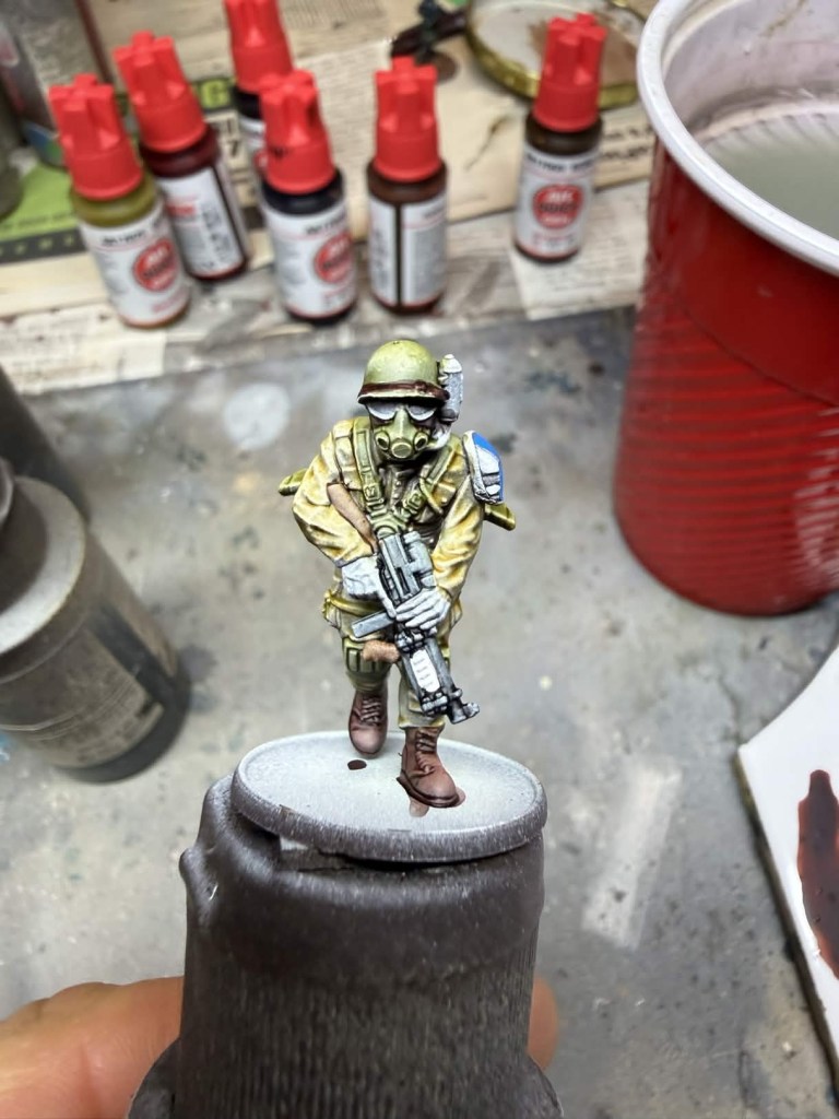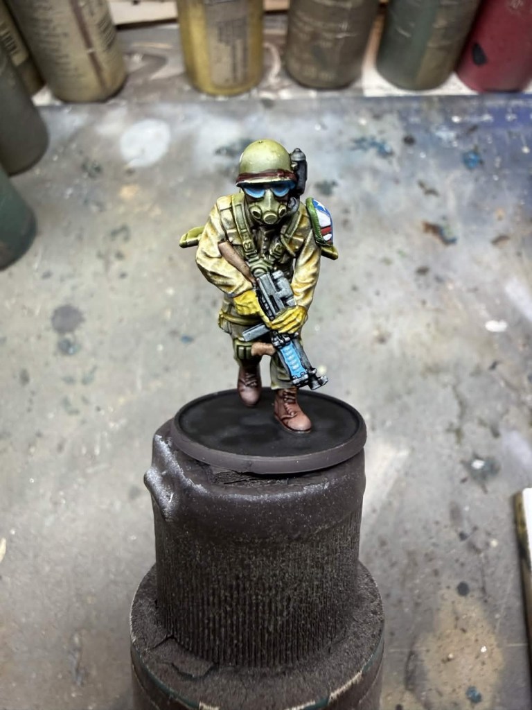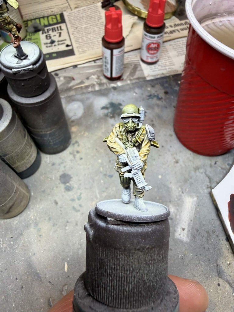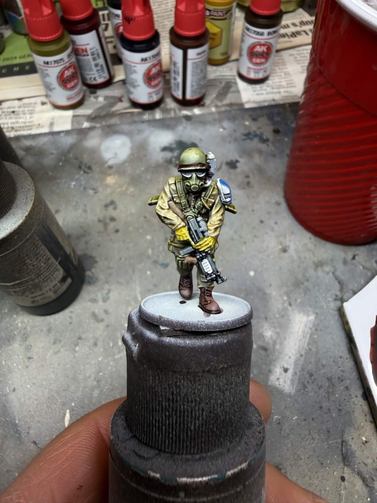 - Gloves – Two coats of AP Speedpaint Honey Yellow. I’m sure their is an AK equivalent I just don’t have it yet. I believe Dirty Yellow Quick Gen would work well.