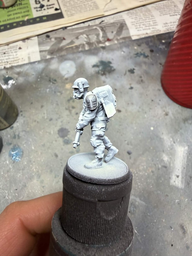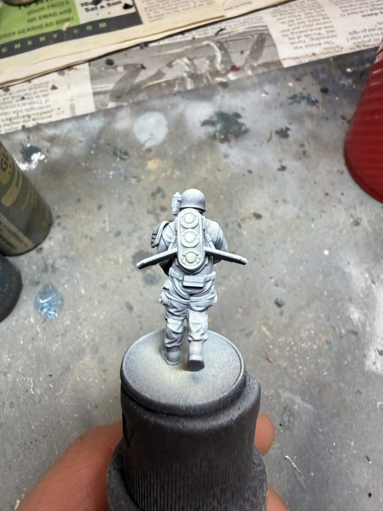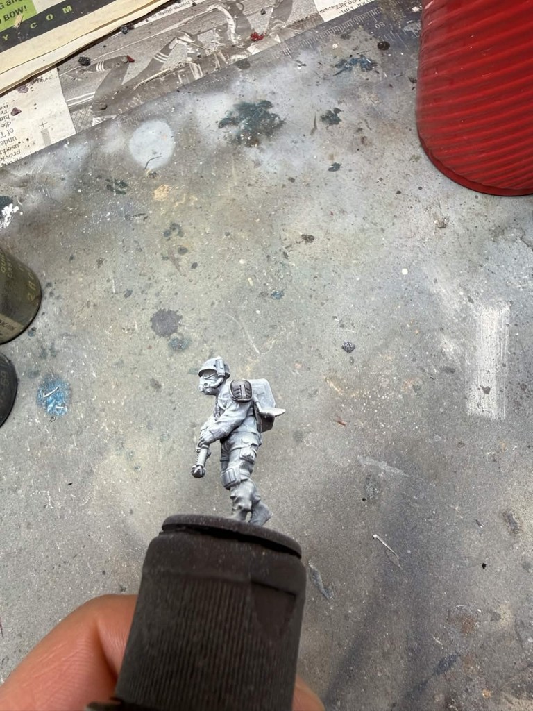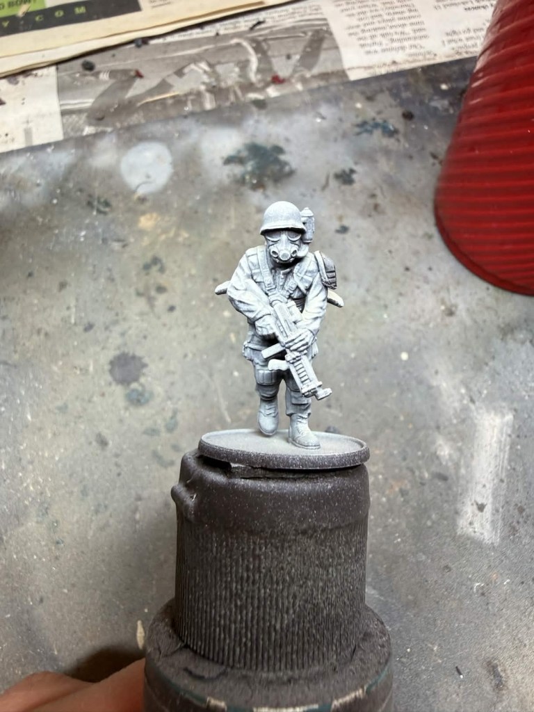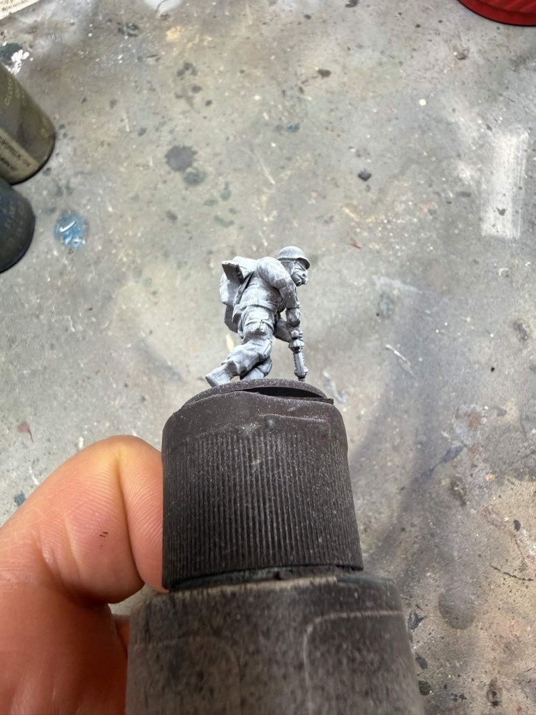 A quick note: I do use an airbrush in most cases since it allows for a smoother application of the undercoat (zenithal) and benefits quick paints more than slapchop (dry brushing the undercoat on). Fret not if you do not own an airbrush because you can still achieve amazing results without one. For how to apply the slapchop effect please reference my article on how to paint US Bolt Action Marines. If you are going to use a dry brush instead of an airbrush the undercoat colors are the same as the ones I will mention below that I used for airbrushing the zenithal undercoat.