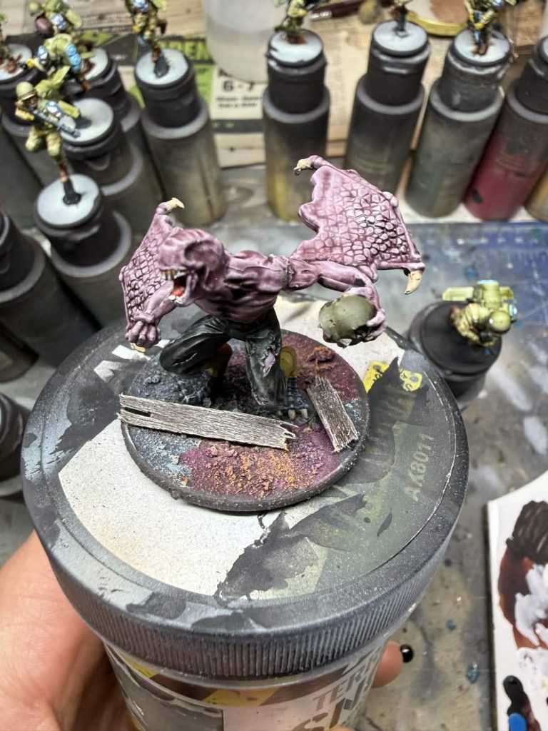- Apply your choice of basing texture paste. I used a random one I had left over from a commission since the color will not matter since it will be painted over.