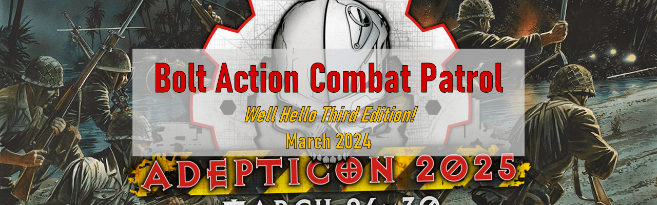 The theme for AdeptiCon 2025 Combat Patrol is Well Hello Third Edition! There are no restrictions on theater, time or place. Players are encouraged to embrace the new options in Third Edition.